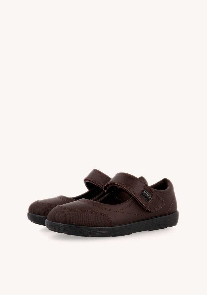COLEGIALES DE PIEL MARRONES TIPO BAILARINA CON CIERRE AJUSTABLE LAMBDA
