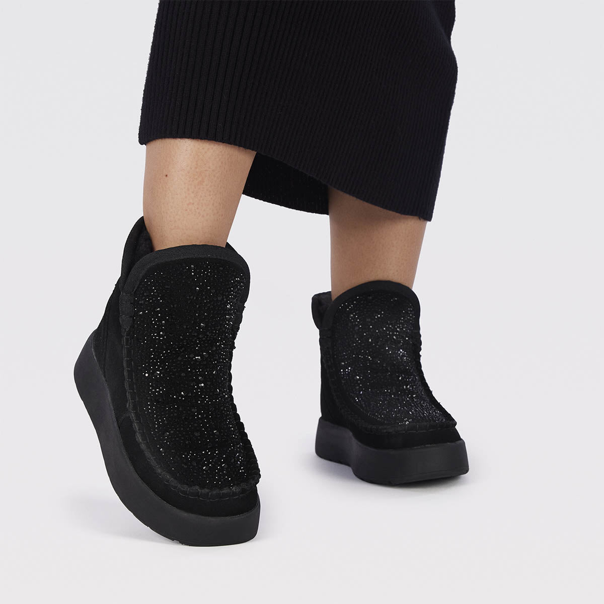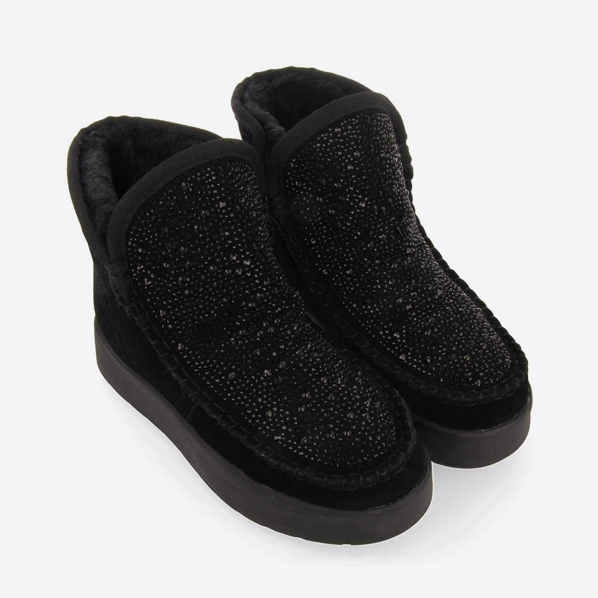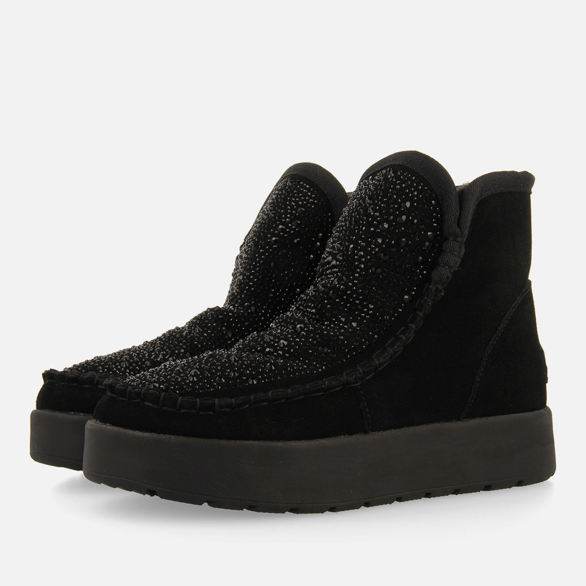 BOTÍN TIPO AUSTRALIANO DE SERRAJE NEGRO CON CRISTALES PARA MUJER CUPAR