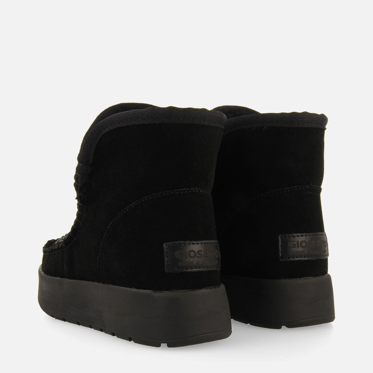 ¡La opción perfecta para los días de más frío! Botines tipo australiano de serraje negro con detalle de microcristales y piso grueso. Caña de 13 cm. Plantilla y forro de poliéster. Piso de EVA muy ligero. Descubre todas las novedades en botas australianas para mujer en la nueva colección de Gioseppo Woman.