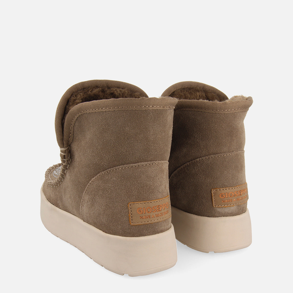 ¡La opción perfecta para los días de más frío! Botines tipo australiano de serraje taupe con detalle de microcristales y piso grueso. Caña de 13 cm. Plantilla y forro de poliéster. Piso de EVA muy ligero. Descubre todas las novedades en botas australianas para mujer en la nueva colección de Gioseppo Woman.