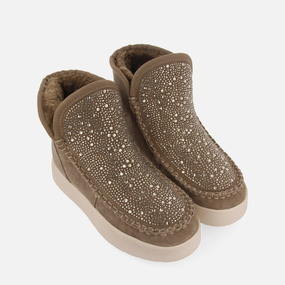 BOTÍN TIPO AUSTRALIANO DE SERRAJE TAUPE CON CRISTALES PARA MUJER CUPAR