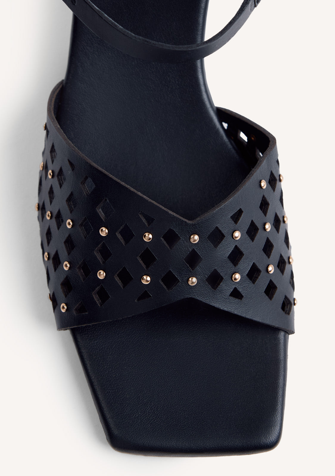 SANDALIAS TACÓN PIEL CALADA Y TACHAS PESHTIGO