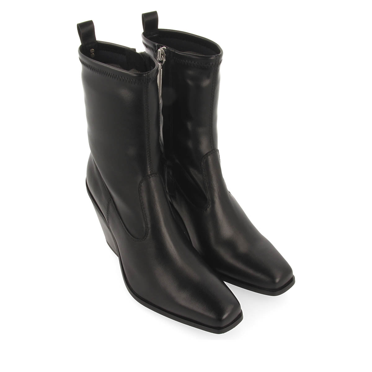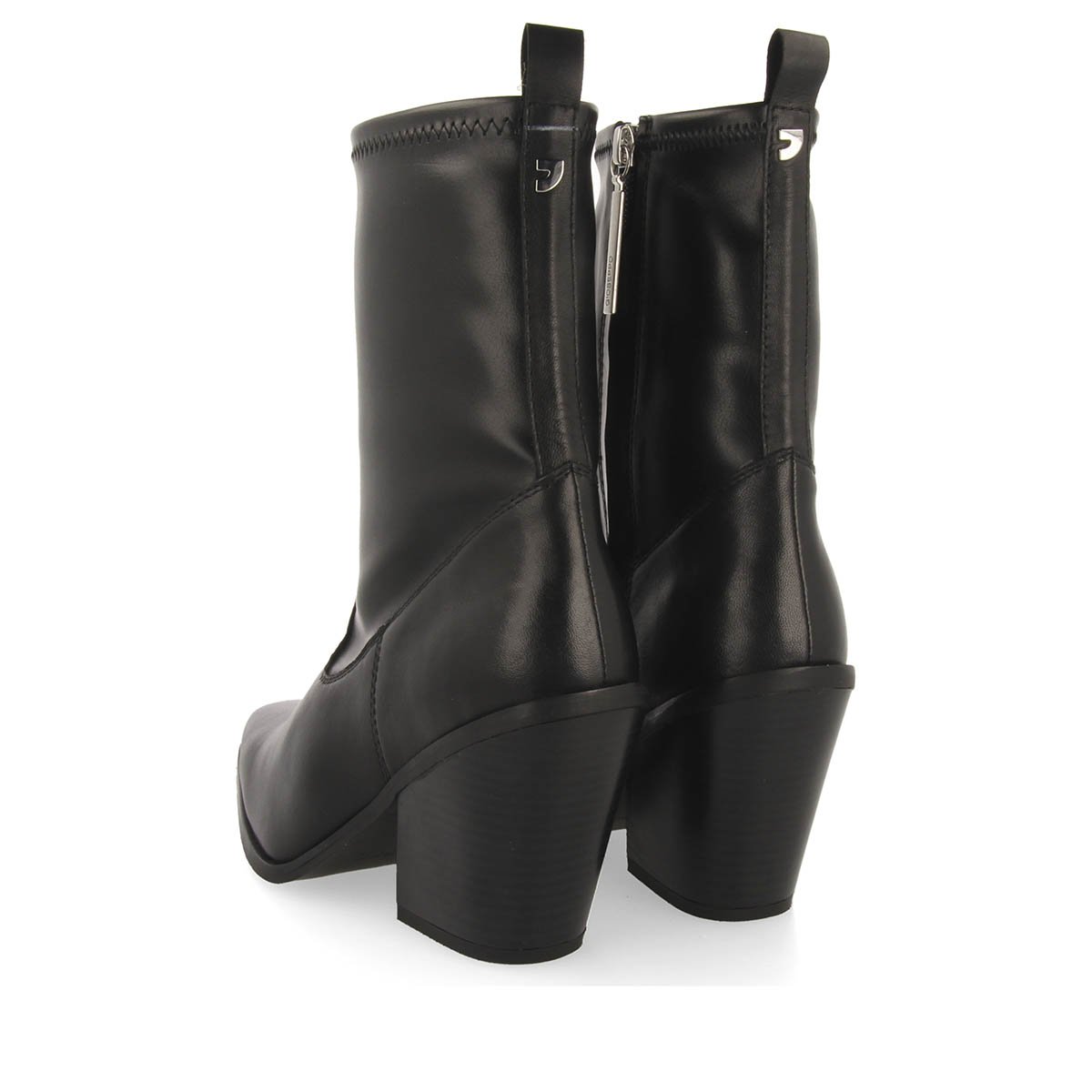 BOTA ELÁSTICA DE PIEL COLOR NEGRO Y PUNTA SEMICUADRADA PARA MUJER DRYMEN