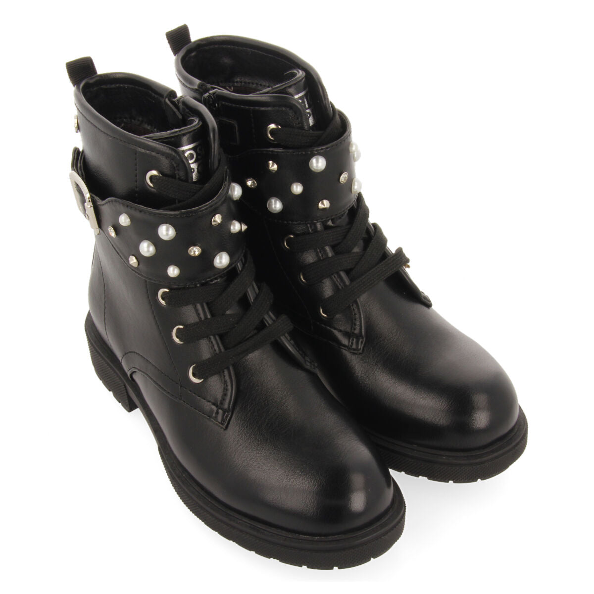 BOTINES NEGROS CON CORDONES Y ADORNOS PARA NIÑA Y NIÑO ERSKINE