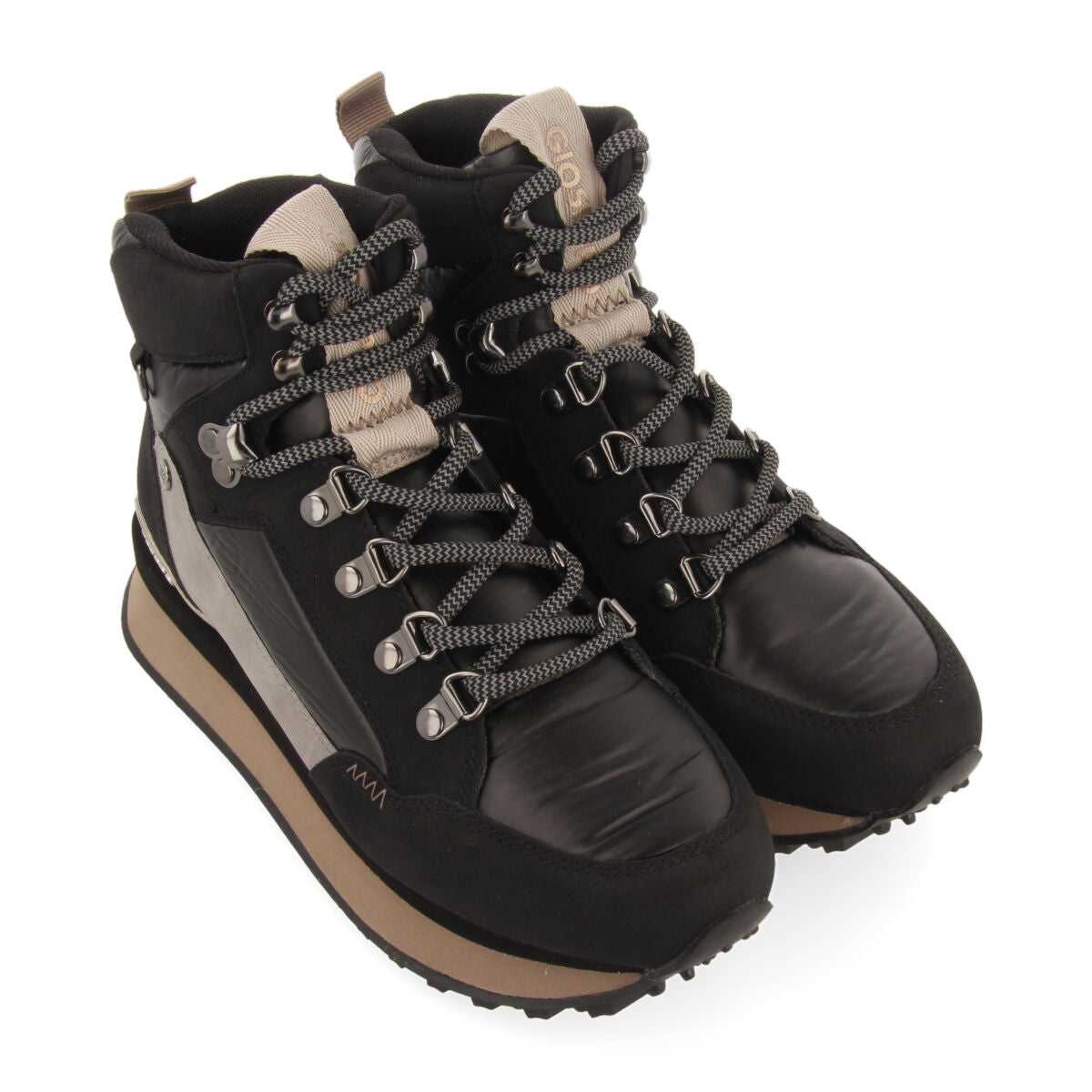 SNEAKERS NEGRAS TIPO BOTÍN MONTAÑERO CON DETALLES PARA MUJER FERNEY