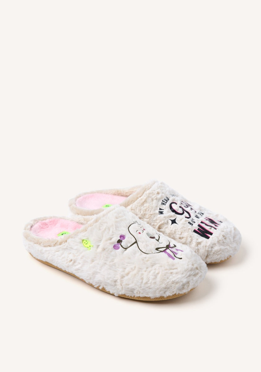 ZAPATILLAS DE CASA PELO DIBUJO Y FRASE BLANTYRE