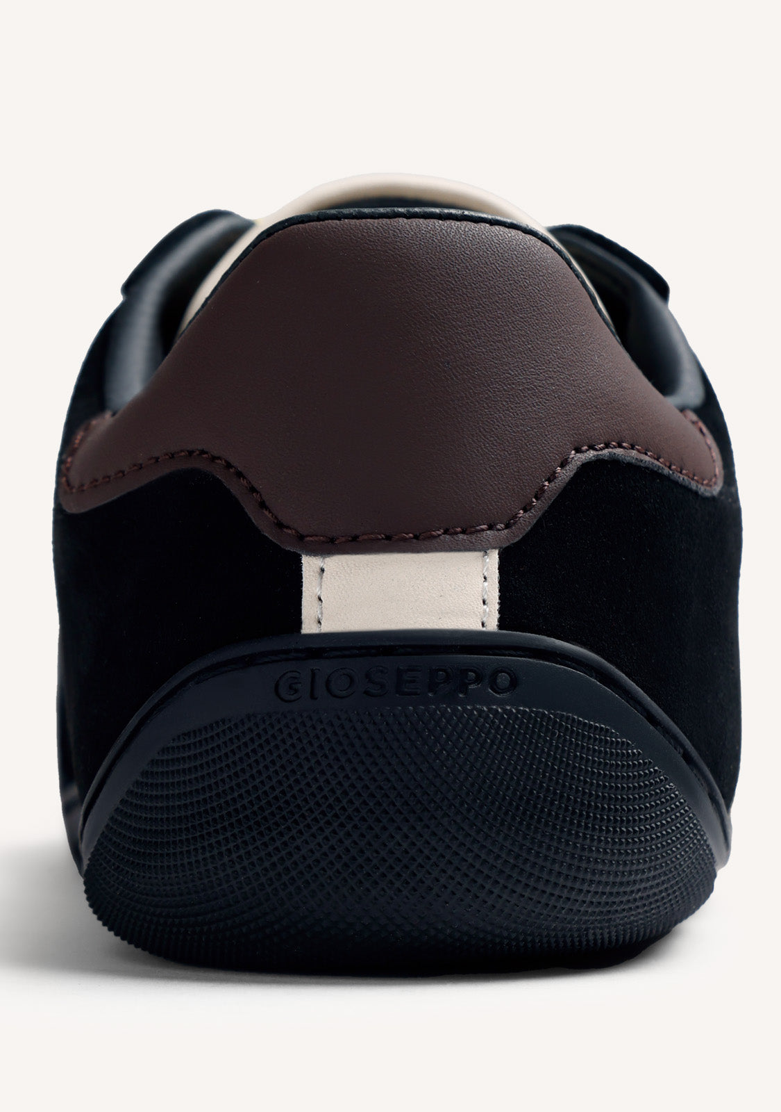 GIOSEPPO x I AM by Melyssa Pinto. Zapatillas negras de piel serraje con contraste de colores y texturas. Incorporan 2 cordones diferentes. Diseñadas siguiendo las tendencias minimalistas para garantizar la pisada natural.