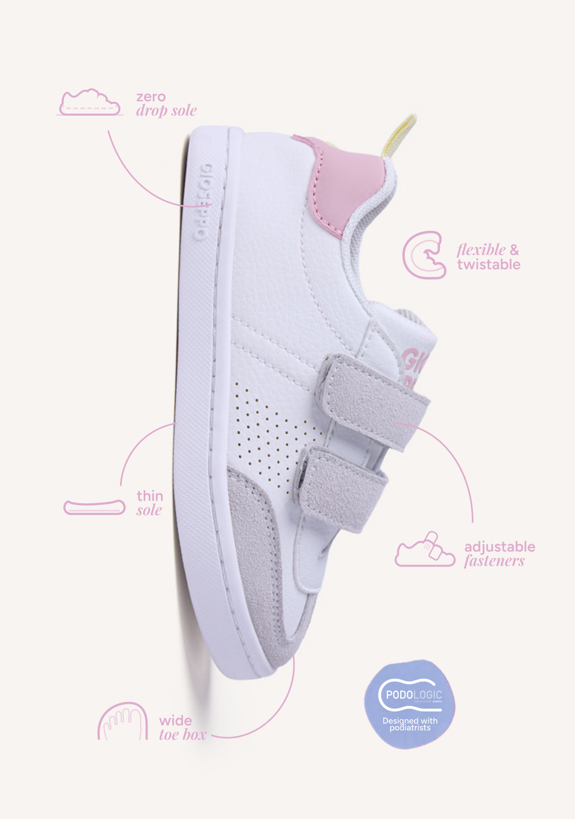 Zapatillas con acentos de color y calado en el lateral. Diseñadas siguiendo las tendencias minimalistas para garantizar la pisada natural. Cuentan con cierres ajustables en el empeine.