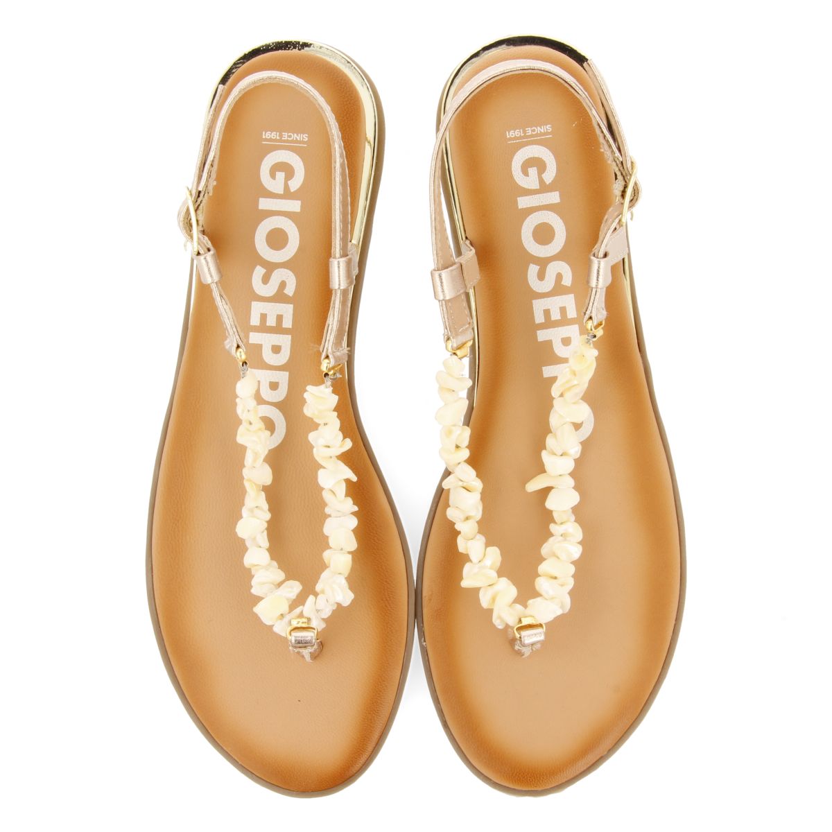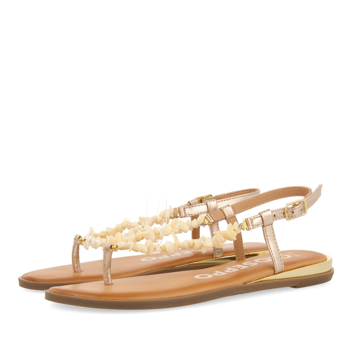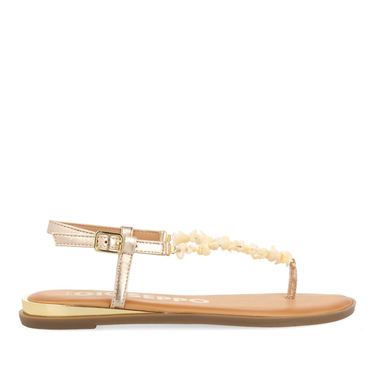 SANDALIAS DE PIEL DORADAS CON PIEDRAS BLANCAS PARA MUJER TRABIA