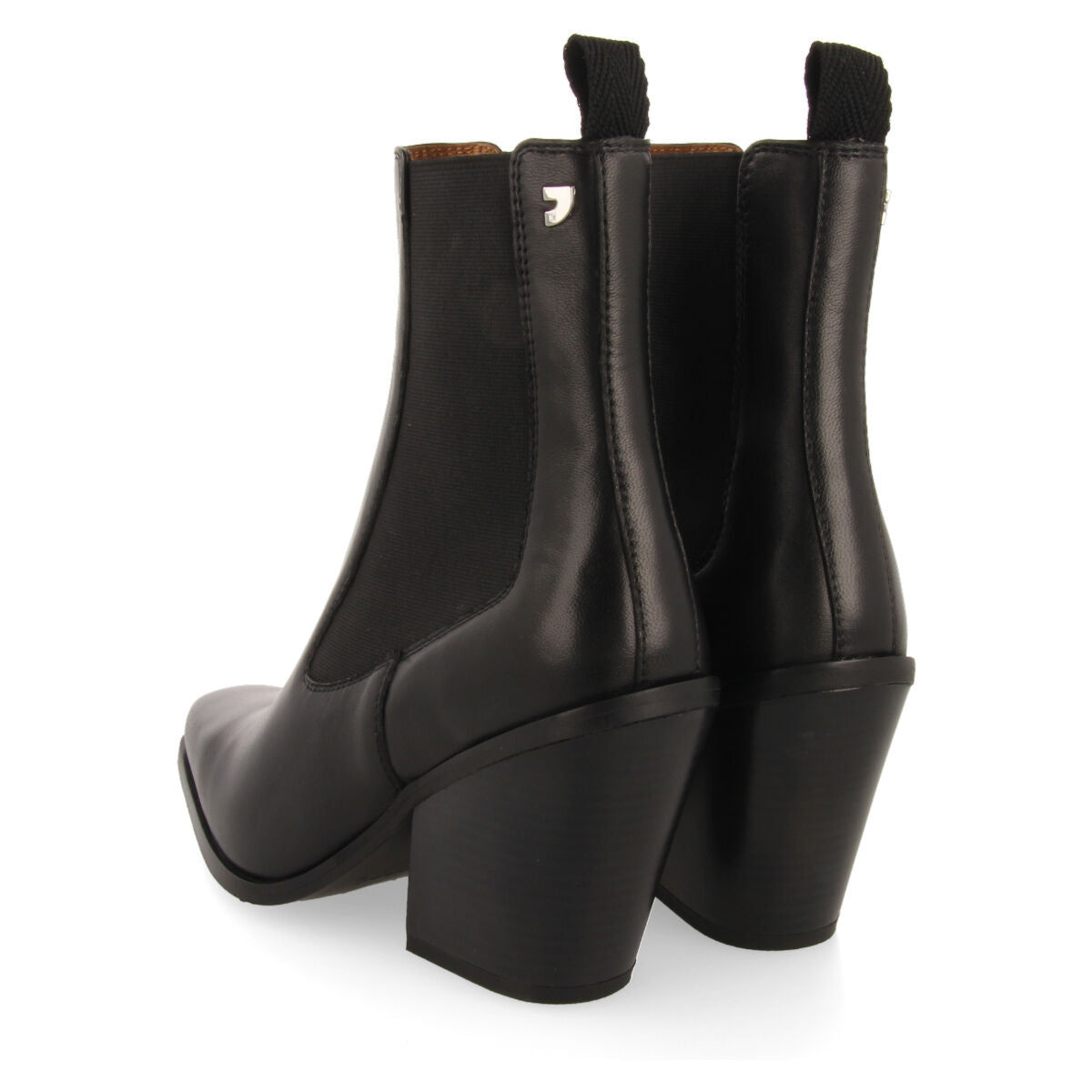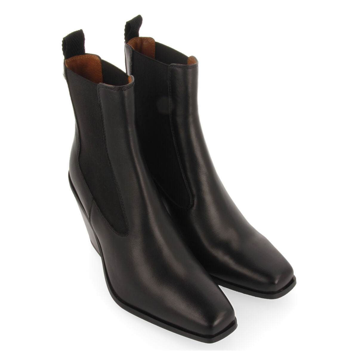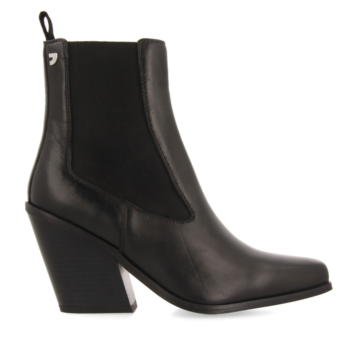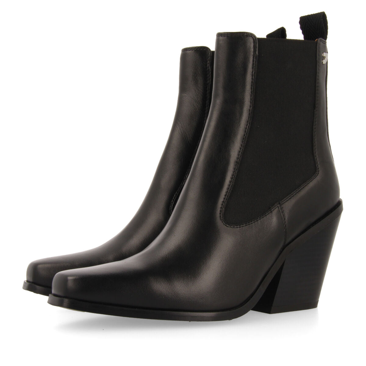 ¡El básico que más está arrasando! Botines tipo Chelsea en piel de color negro, tacón alto y punta semicuadrada. Planta con fibras naturales. Plantilla acolchada de látex y forro reciclado. Plantilla y forro de piel curtidos en tenerías que siguen un proceso de curtición más sostenible bajo los estándares de Leather Working Group. Descubre toda la temporada FW23 y enamórate de nuestros modelos más trendy.