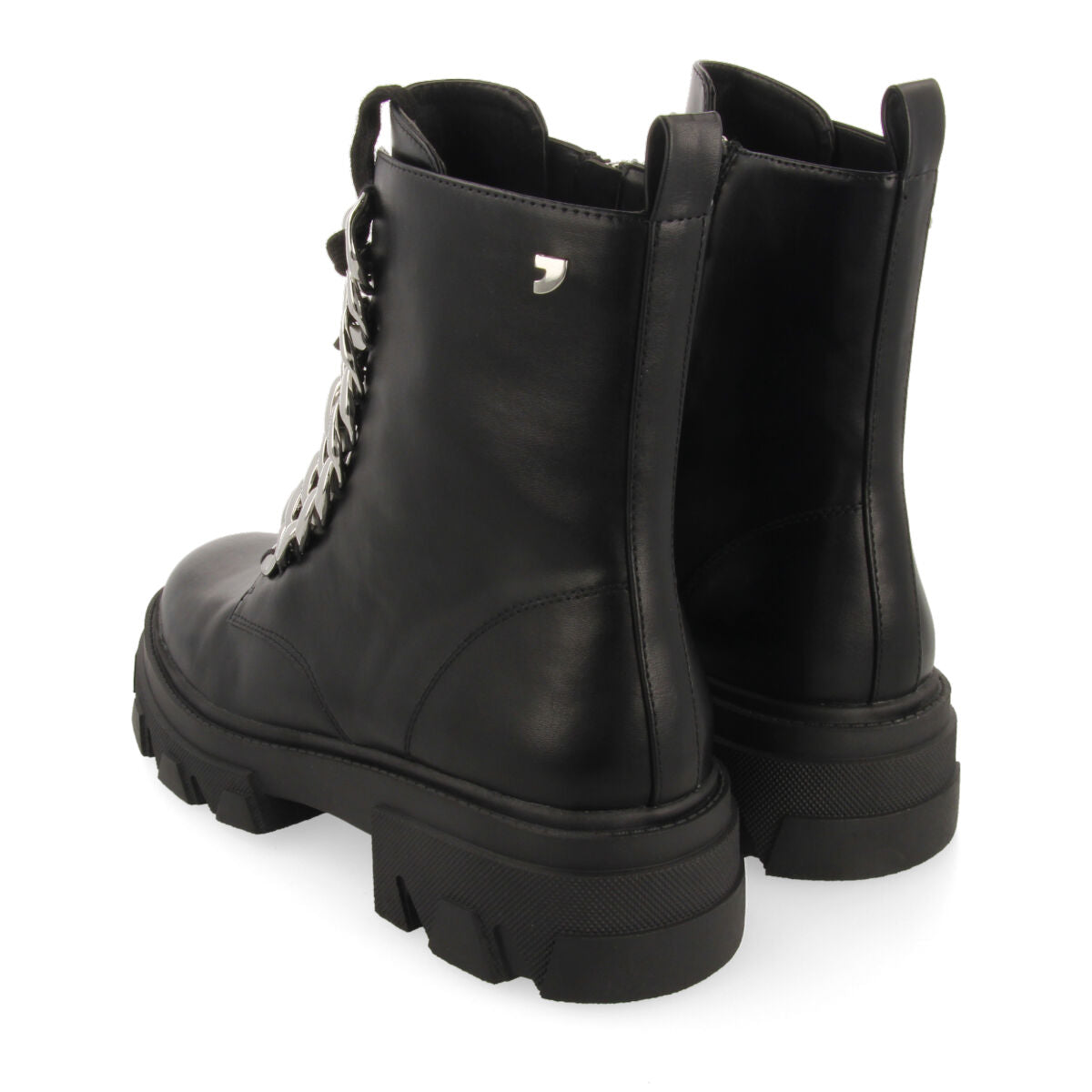 BOTÍN TIPO MILITAR NEGRO DE CORDONES Y PISO TRACK CON MAXICADENAS PARA MUJER HOLZTHUM