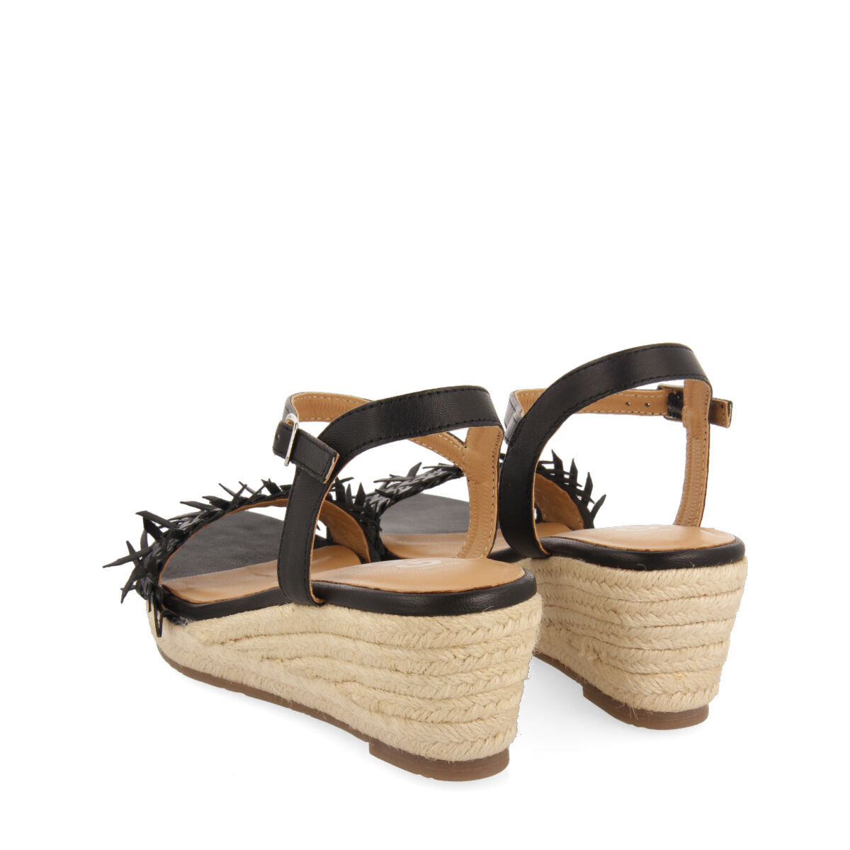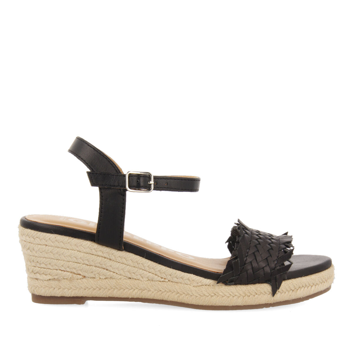 SANDALIAS NEGRAS TRENZADAS CON CUÑA DE YUTE PARA MUJER ICA