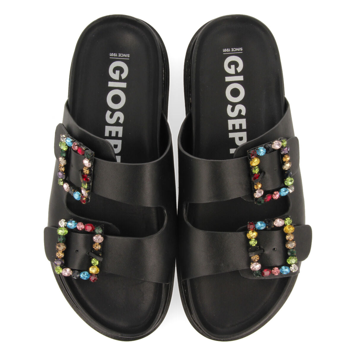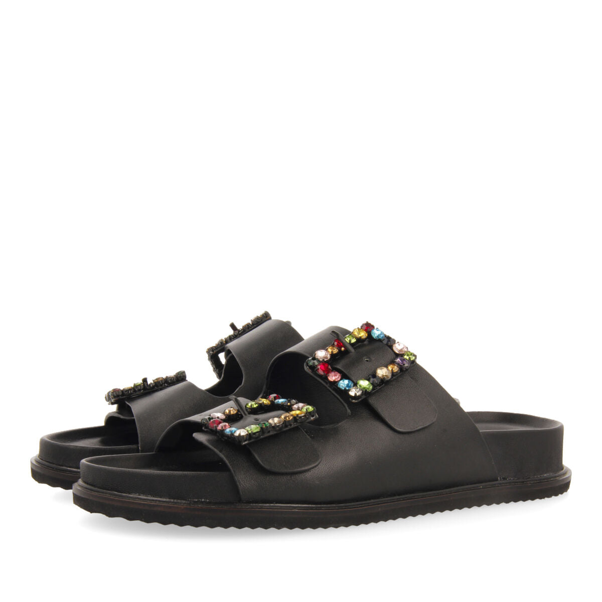SANDALIAS NEGRAS TIPO BIO CON HEBILLAS CON CRISTALES MULTICOLOR PARA MUJER KORONADAL