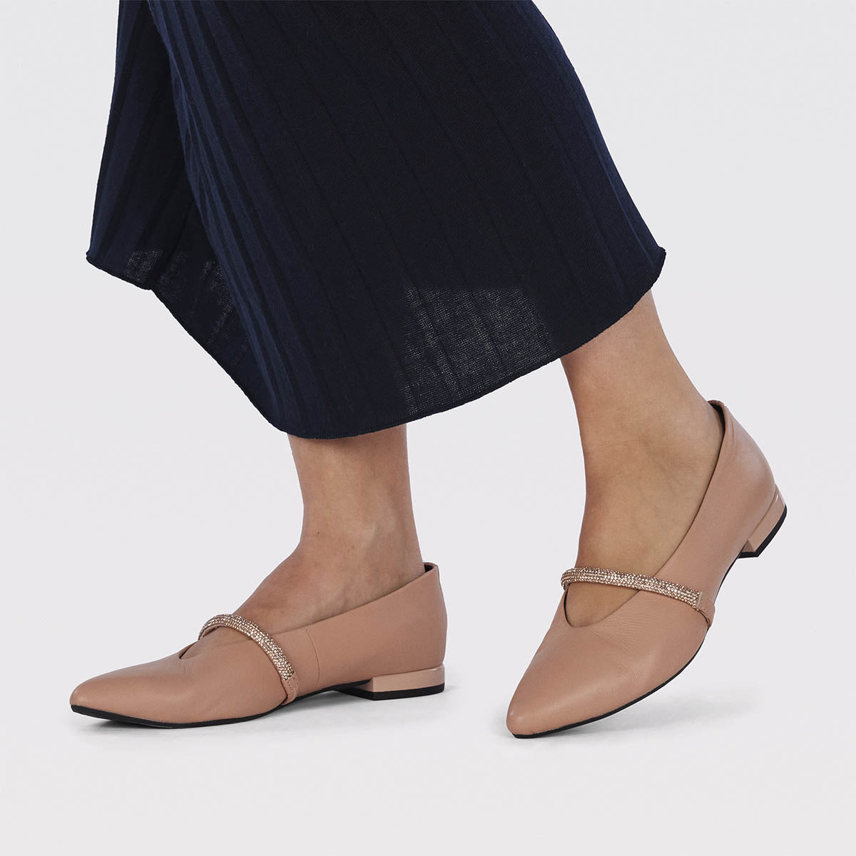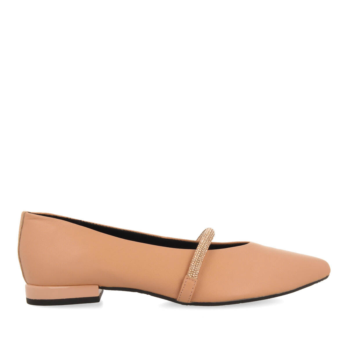BAILARINAS NUDE DE PIEL CON DETALLE DE TIRA CON STRASS PARA MUJER LAMLASH