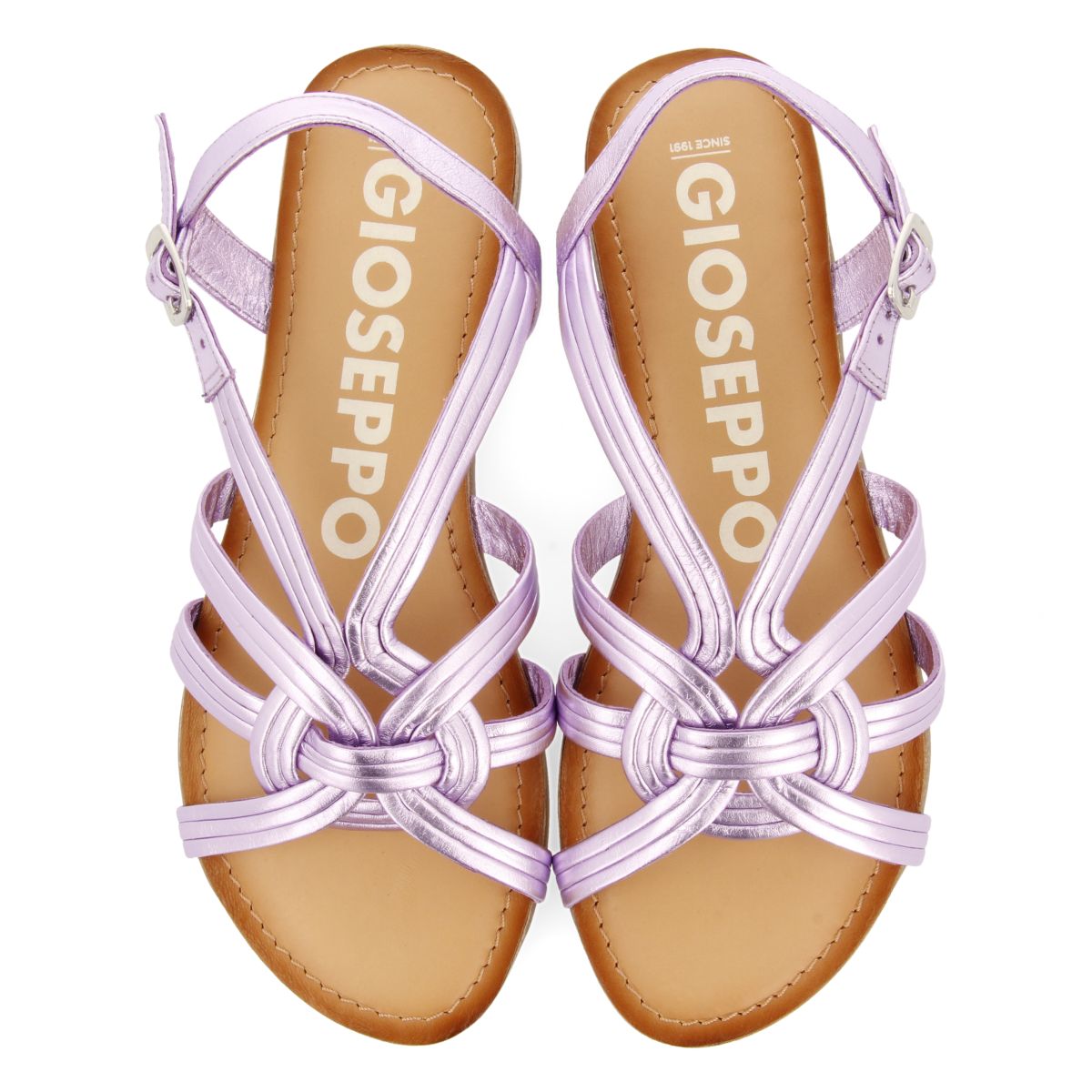 SANDALIAS MALVA DE PIEL CON TIRAS CRUZADAS PARA MUJER GOLAJ