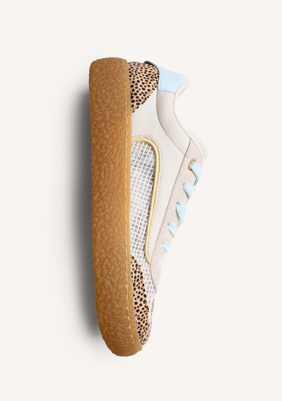 Zapatillas con piel serraje, rejilla superpuesta y estampado animal. Suela granulada. Cuentan con plantilla extraíble termoconformada para repartir el peso del cuerpo de forma uniforme por toda la superficie plantar. Altura plataforma: 3 cm.