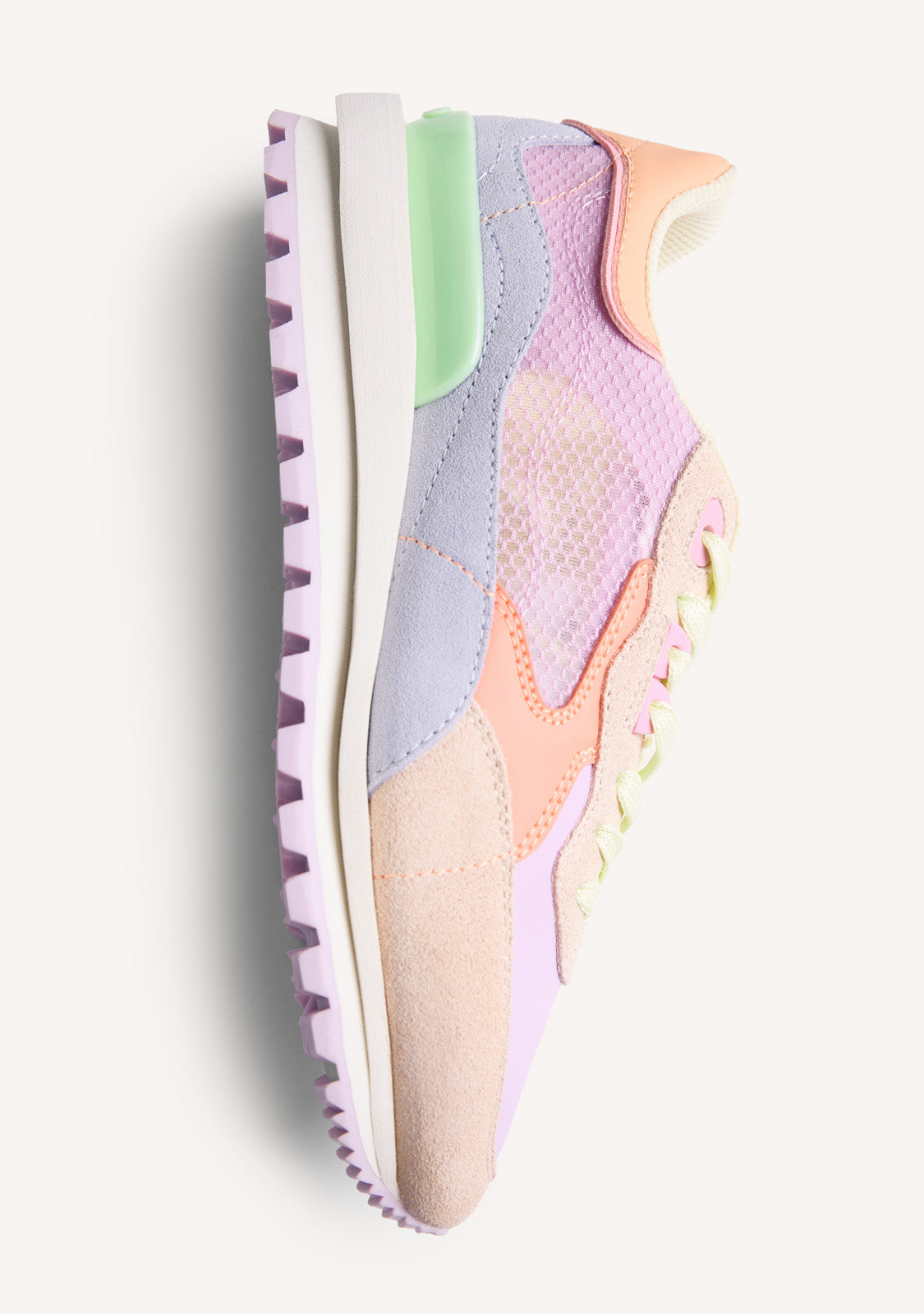 Zapatillas con piel serraje y rejilla superpuesta. Contraste de colores y texturas. Cuentan con plantilla Gio Memory Effect, un sistema de efecto memoria que amortigua y suaviza la pisada. Altura plataforma: 3,2 cm.