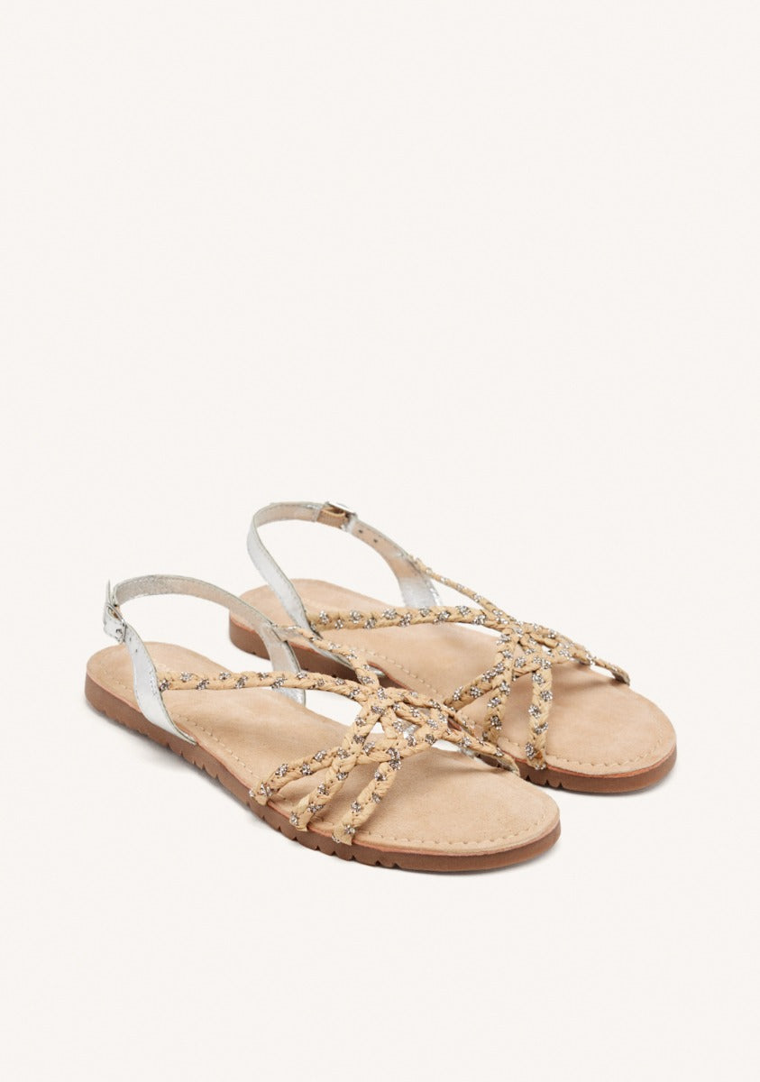 SANDALIAS PIEL, RAFIA Y BRILLO WIOTA