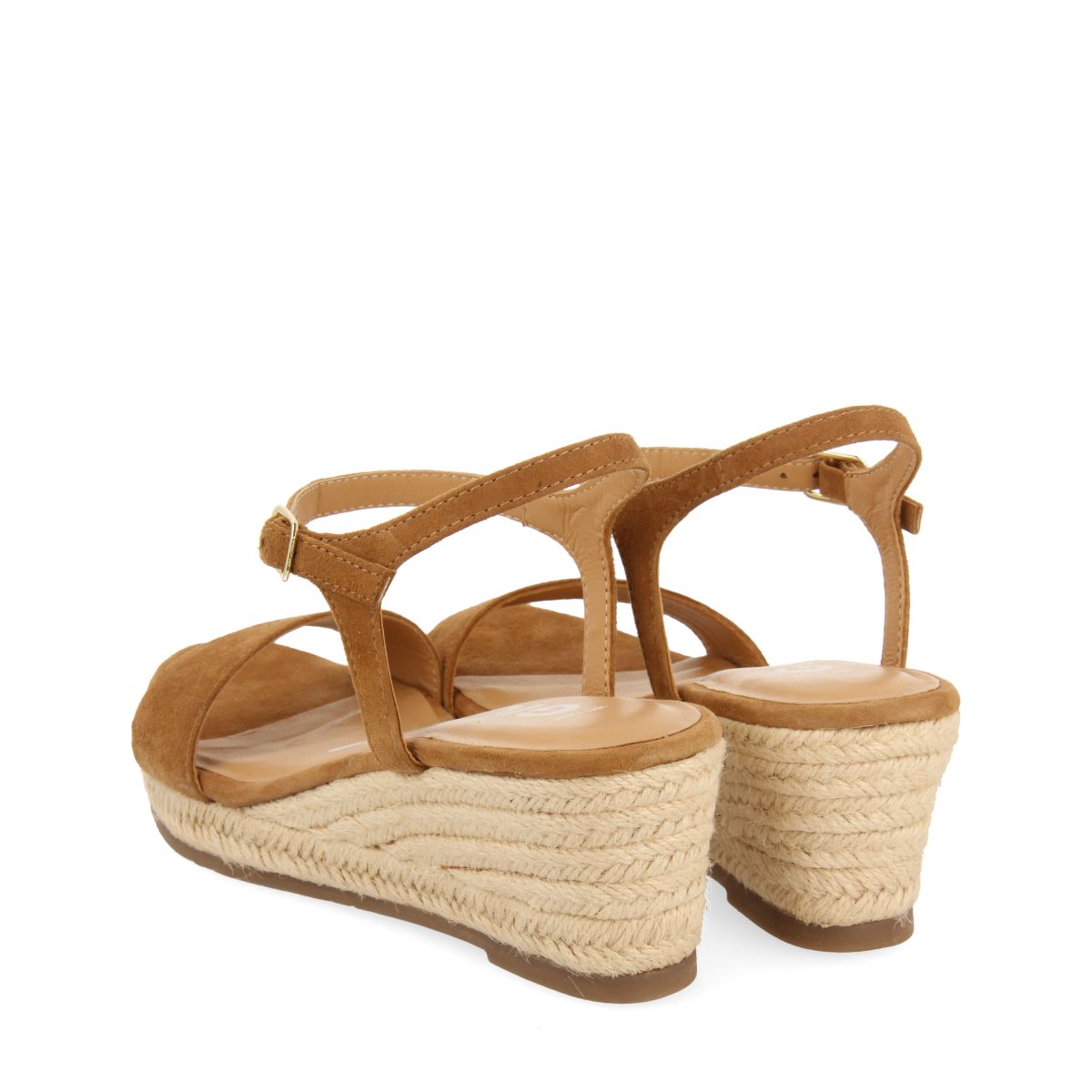 SANDALIAS DE PIEL COLOR CUERO CON CUÑA DE YUTE PARA MUJER XARRE