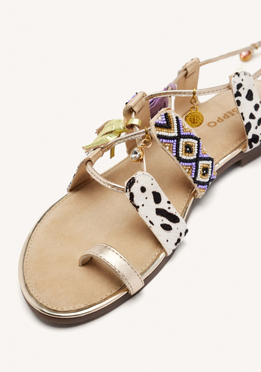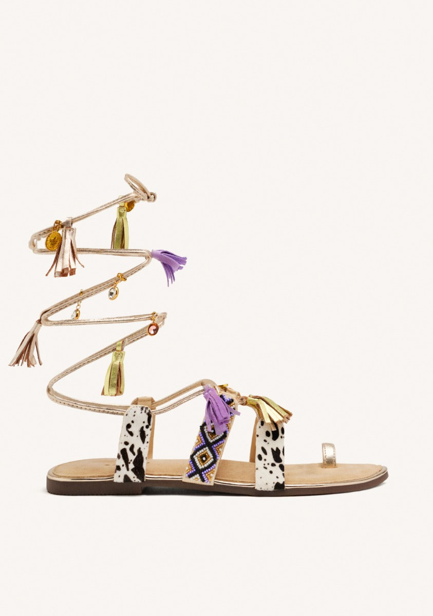 SANDALIAS PIEL ABALORIOS Y FLECOS MONTELLO