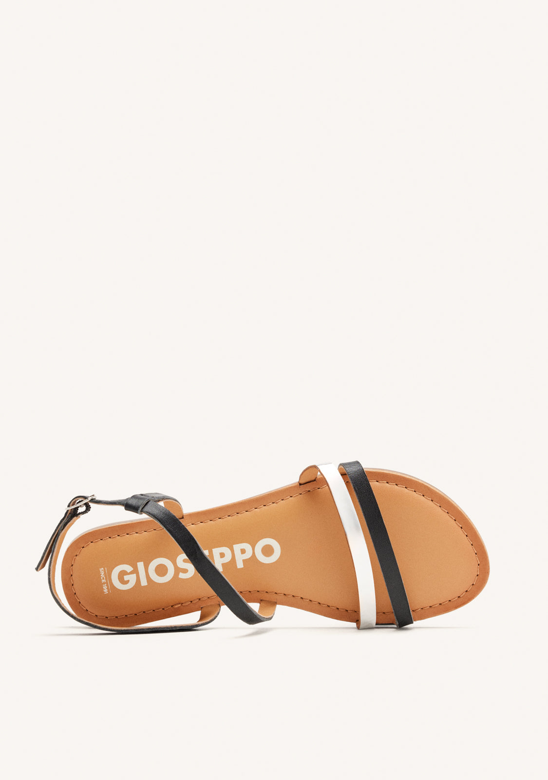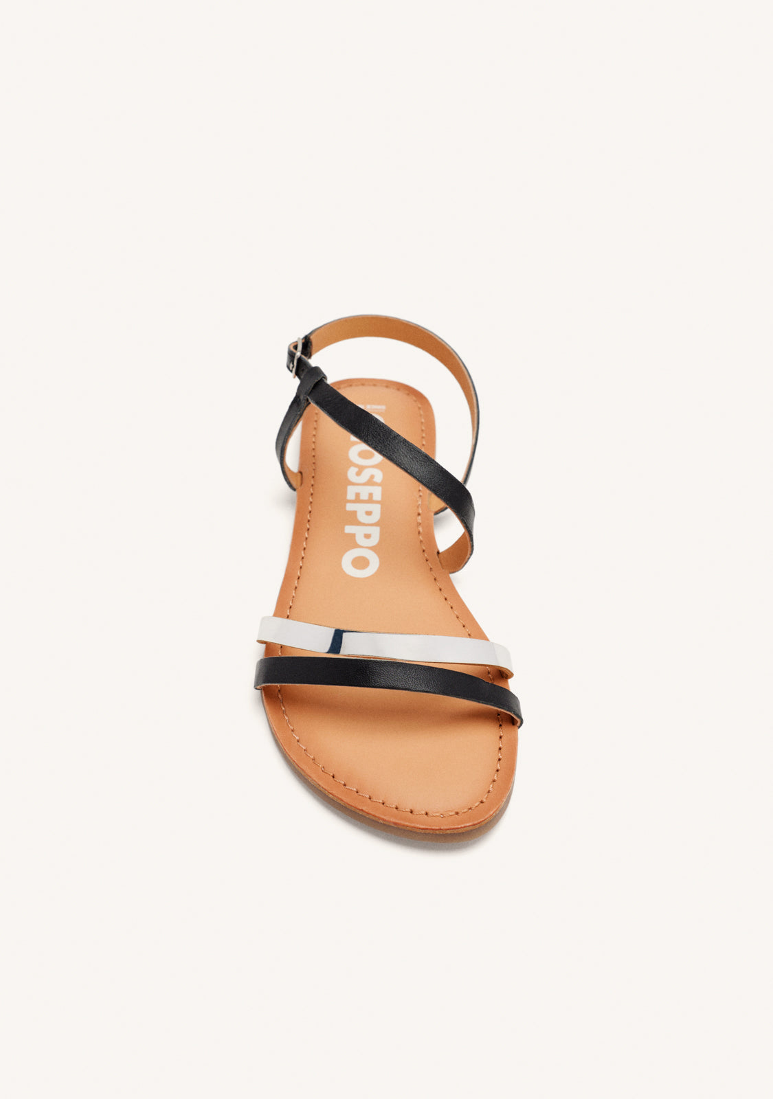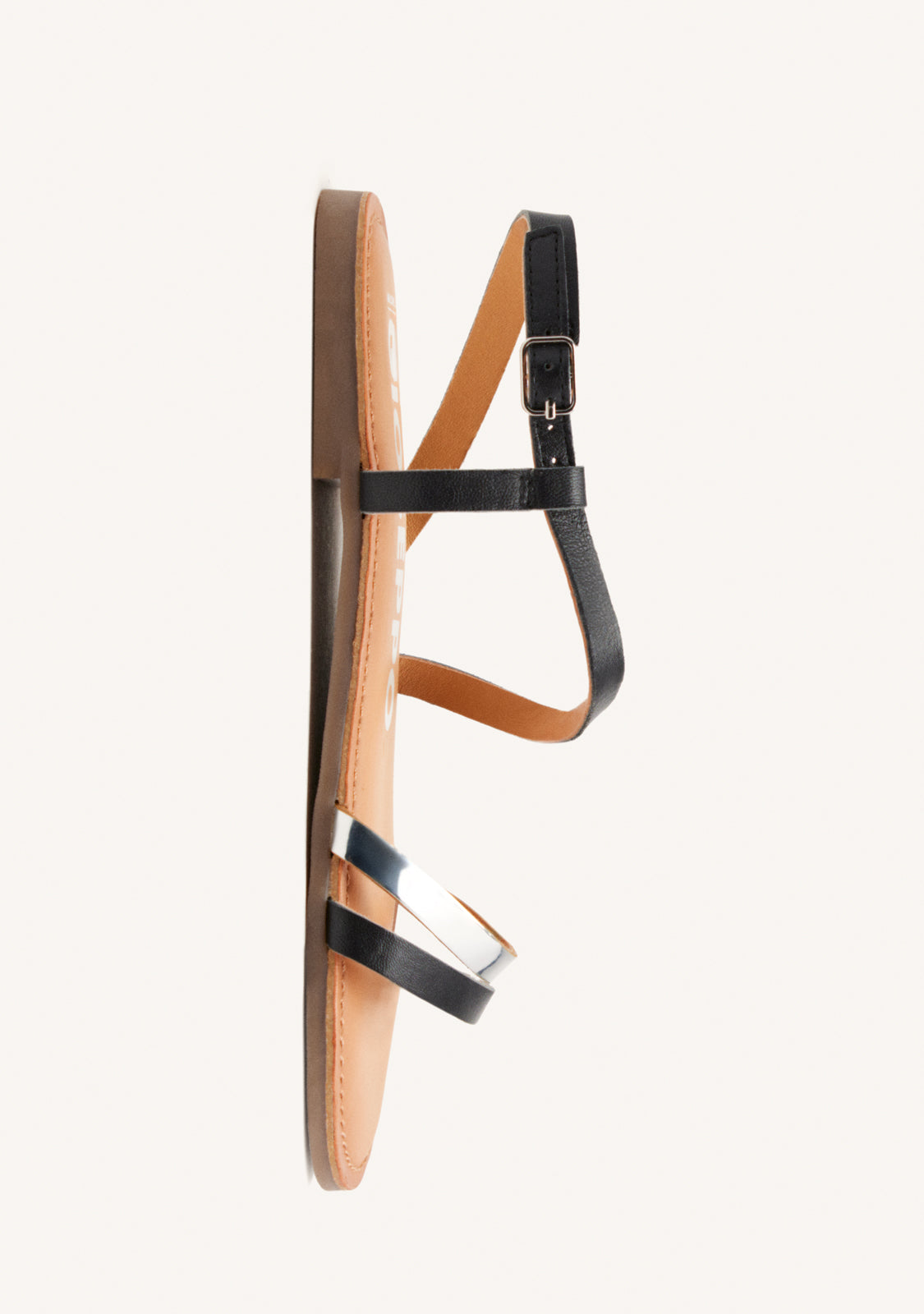SANDALIAS DE PIEL CON TIRAS NEGRAS Y METALIZADAS PARA MUJER BARGEME