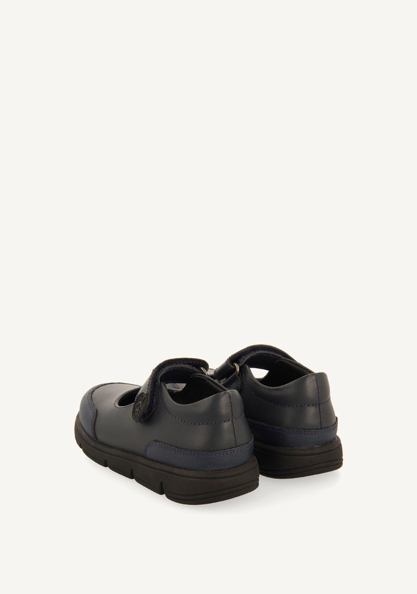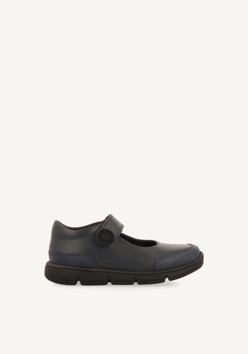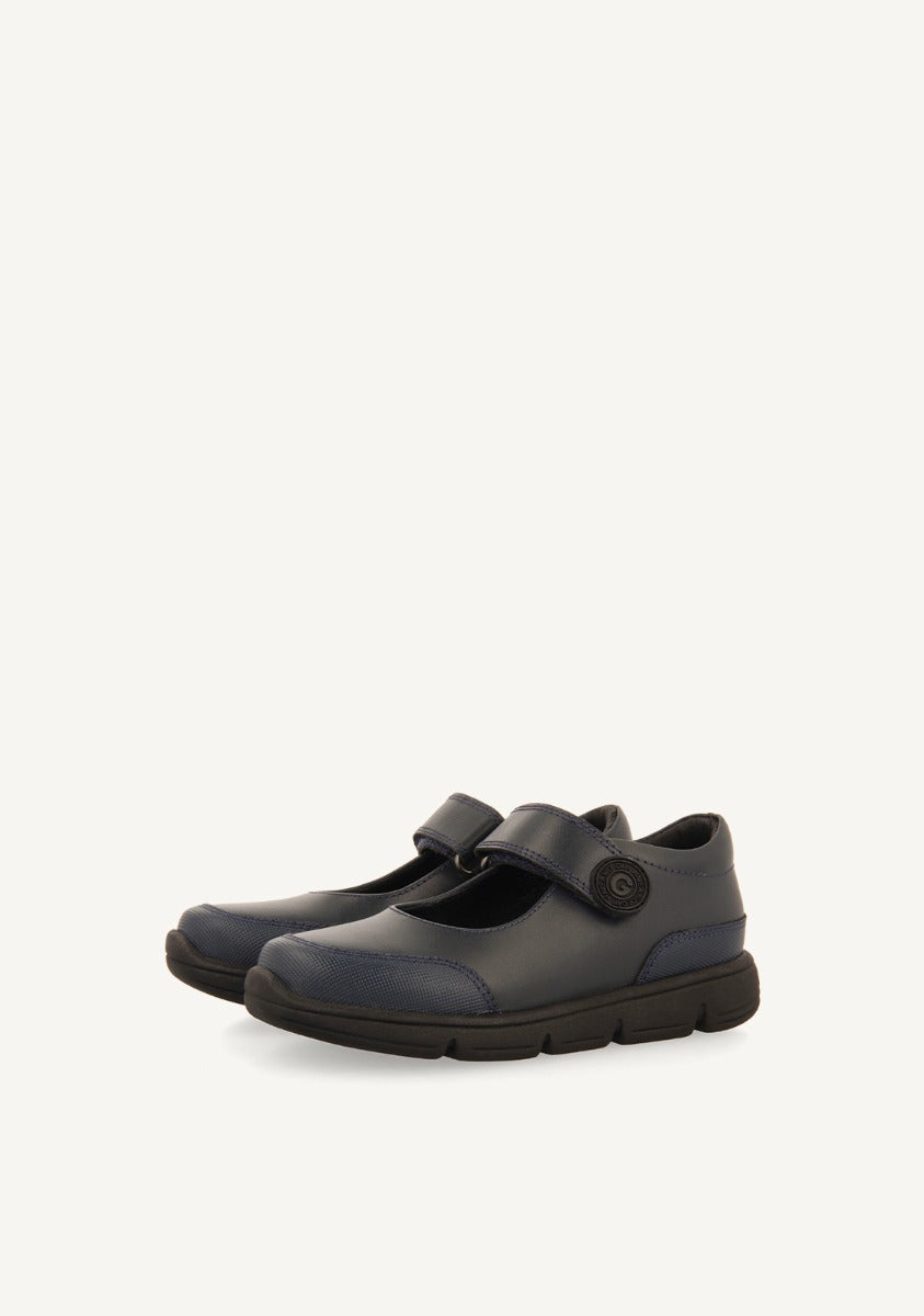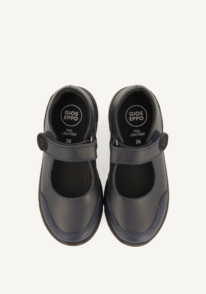¡Para afrontar todos los desafíos del nuevo curso! Bailarinas colegiales color azul marino de piel con cierres ajustables. Cuentan con forro transpirable, piso flexible y plantilla de piel muy acolchada y transpirable. El corte está hecho de piel curtida en tenerías que siguen un protocolo más sostenible según los estándares de Leather Working Group (LWG). ¡La nueva colección Back To School de Gioseppo Kids explora más estilos que nunca! - Resistencia al desgaste. - Materiales de refuerzo. - Suela muy ligera, antideslizante y flexible. - Forro y plantilla transpirables, absorbentes y de secado rápido.