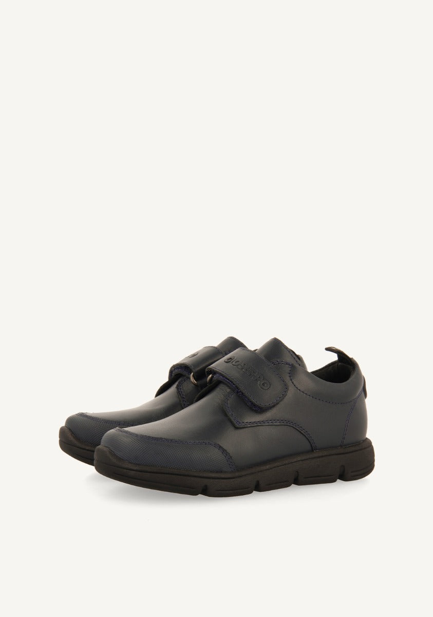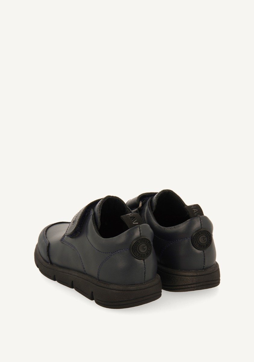 La vuelta al cole será mucho más fácil con Gioseppo Kids. Sneakers colegiales color azul marino de piel con cierres ajustables. Disponen de forro transpirable, piso flexible y plantilla de piel muy acolchada y transpirable. El corte está hecho de piel curtida en tenerías que siguen un protocolo más sostenible según los estándares de Leather Working Group (LWG). Descubre la nueva colección Back To School. - Resistencia al desgaste. - Materiales de refuerzo. - Suela muy ligera, antideslizante y flexible. - Forro y plantilla transpirables, absorbentes y de secado rápido.