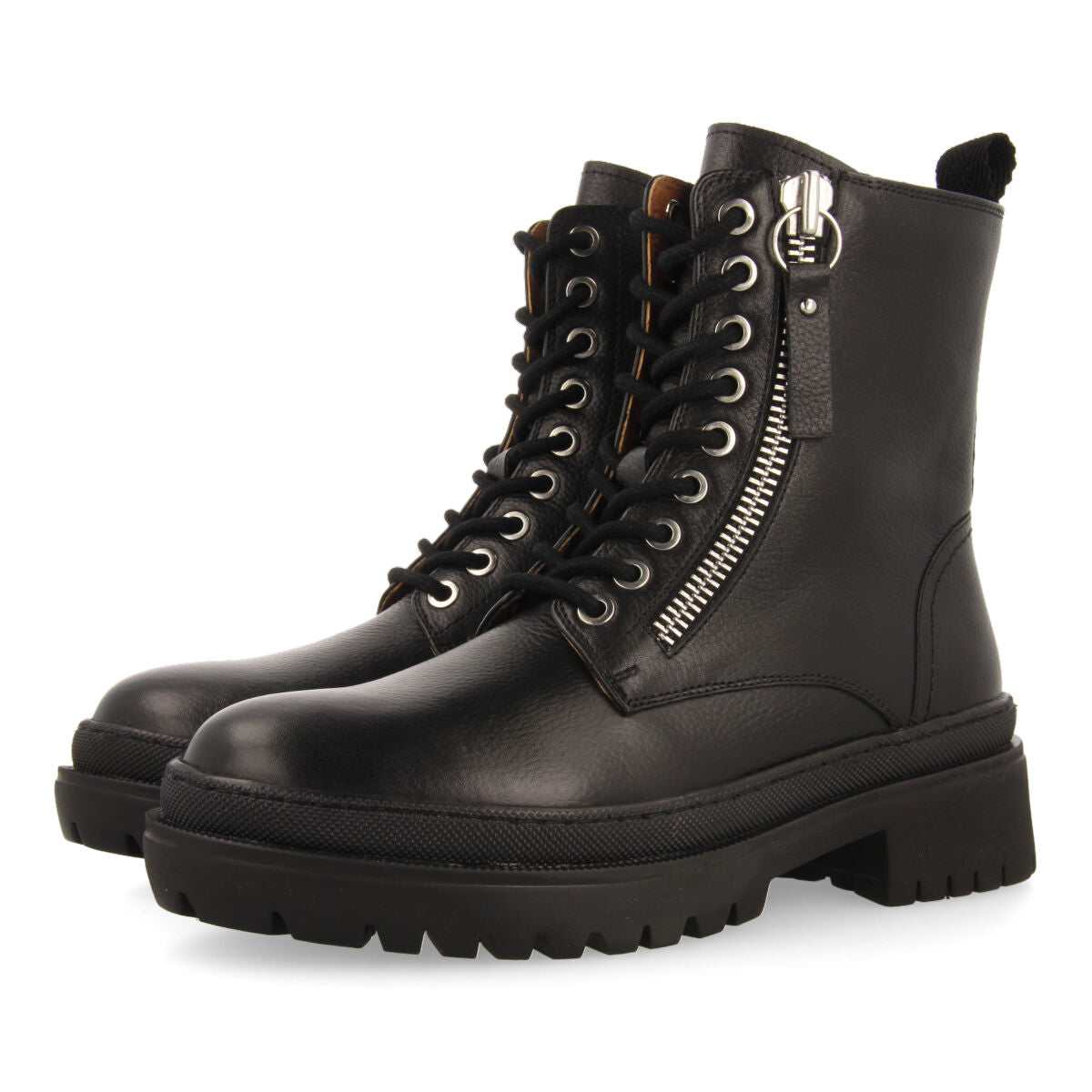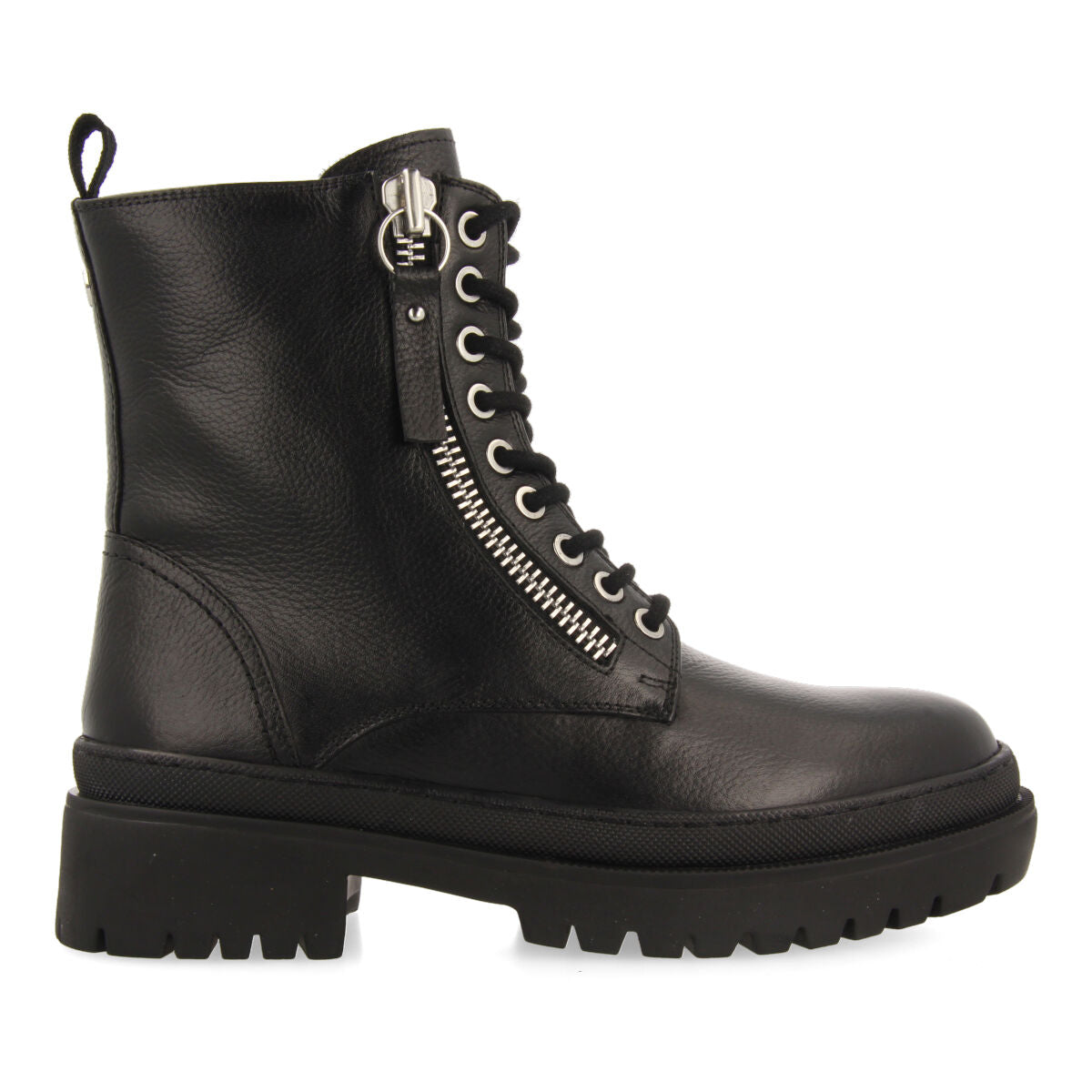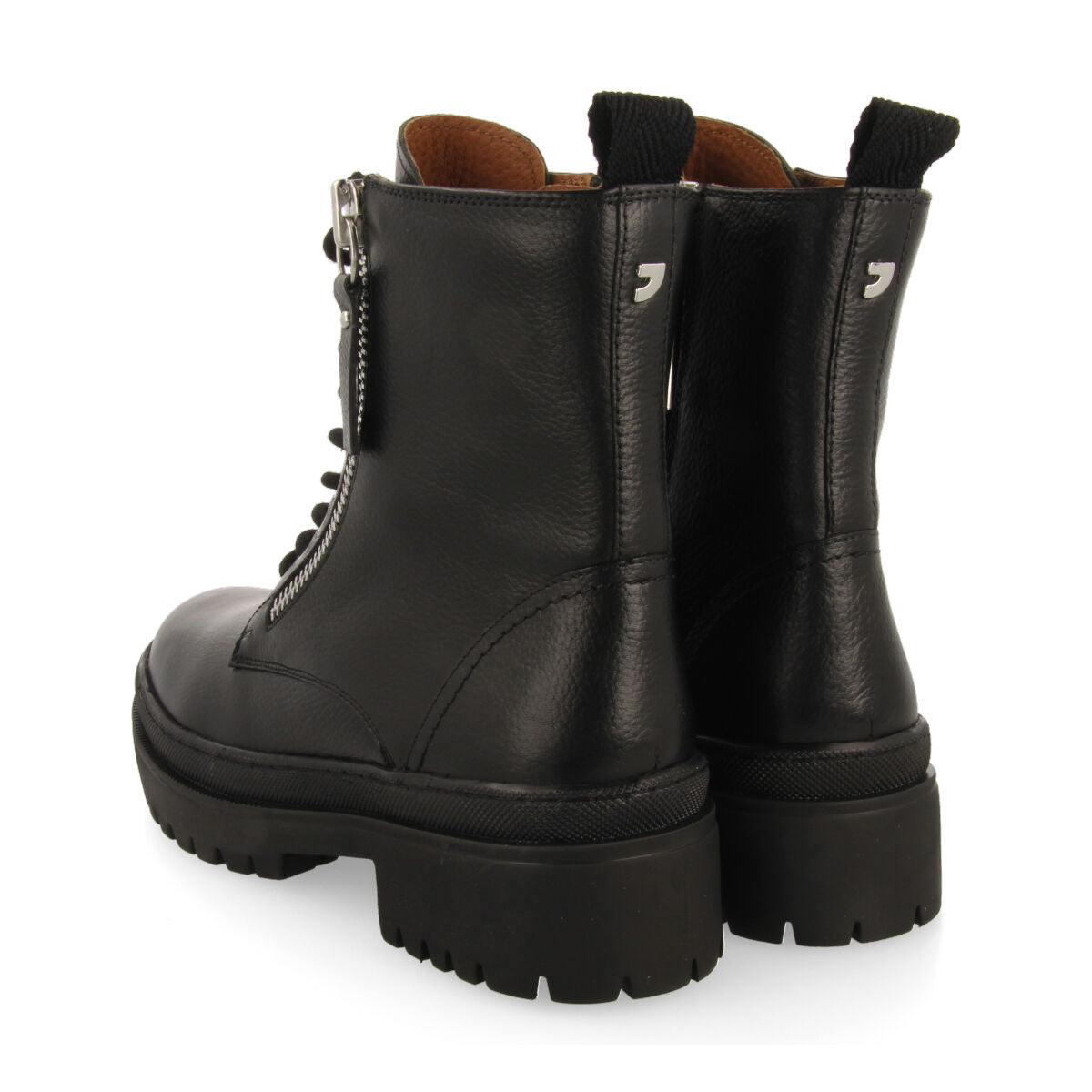 BOTÍN NEGRO DE PIEL TIPO BIKER CON PISO TRACK Y ADORNO DE CREMALLERA METÁLICA PARA MUJER MALLAIG