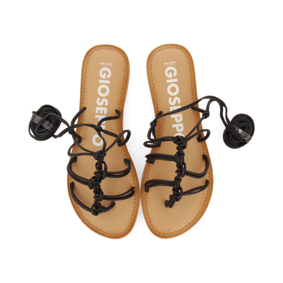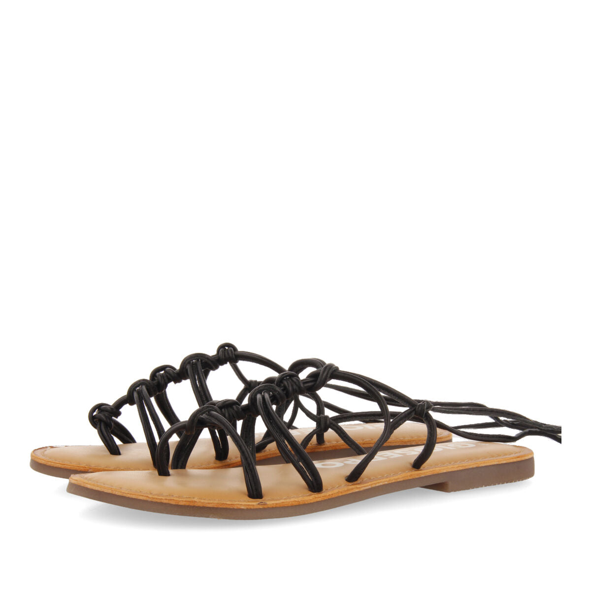 SANDALIAS PLANAS DE PIEL NEGRAS CON TIRAS FINAS Y DETALLE DE NUDOS PARA MUJER MAMBAI