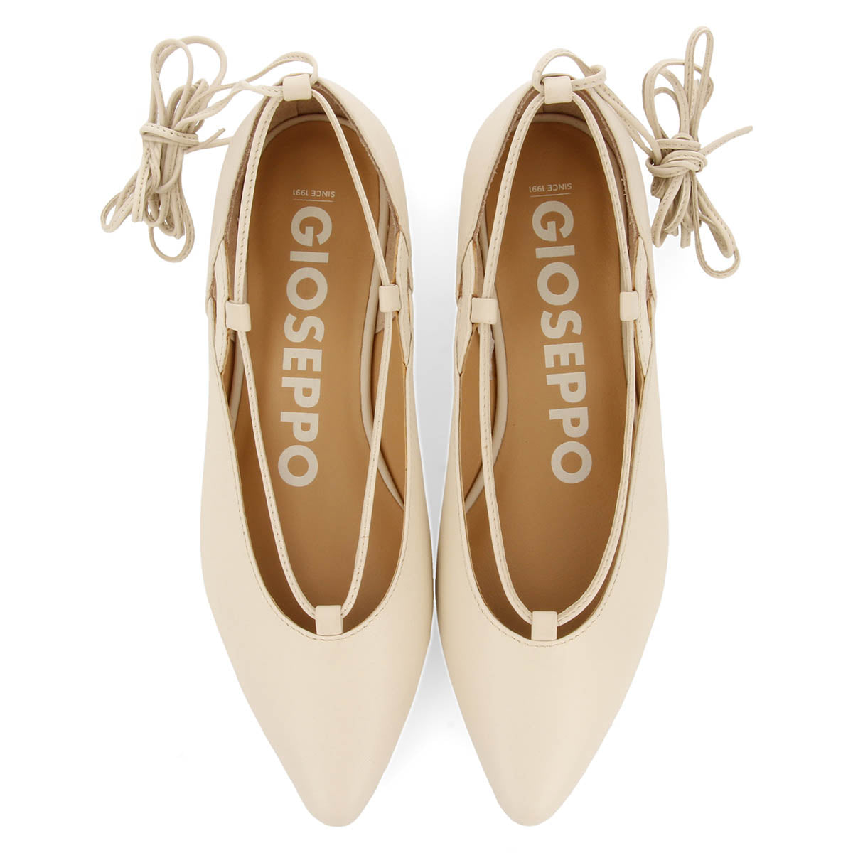 BAILARINAS COLOR OFF-WHITE DE PIEL CON CORDONES PARA MUJER MARINGA