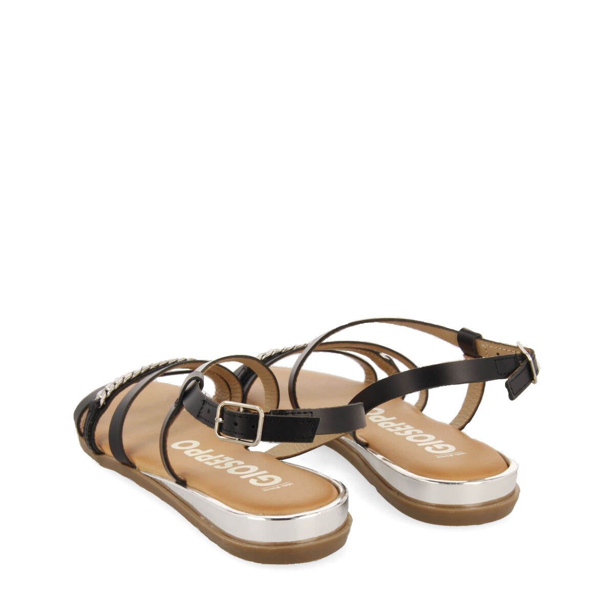 SANDALIAS NEGRAS CON TIRAS Y DETALLE DE CADENA PARA MUJER MAZION