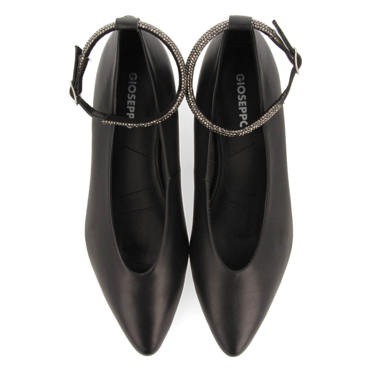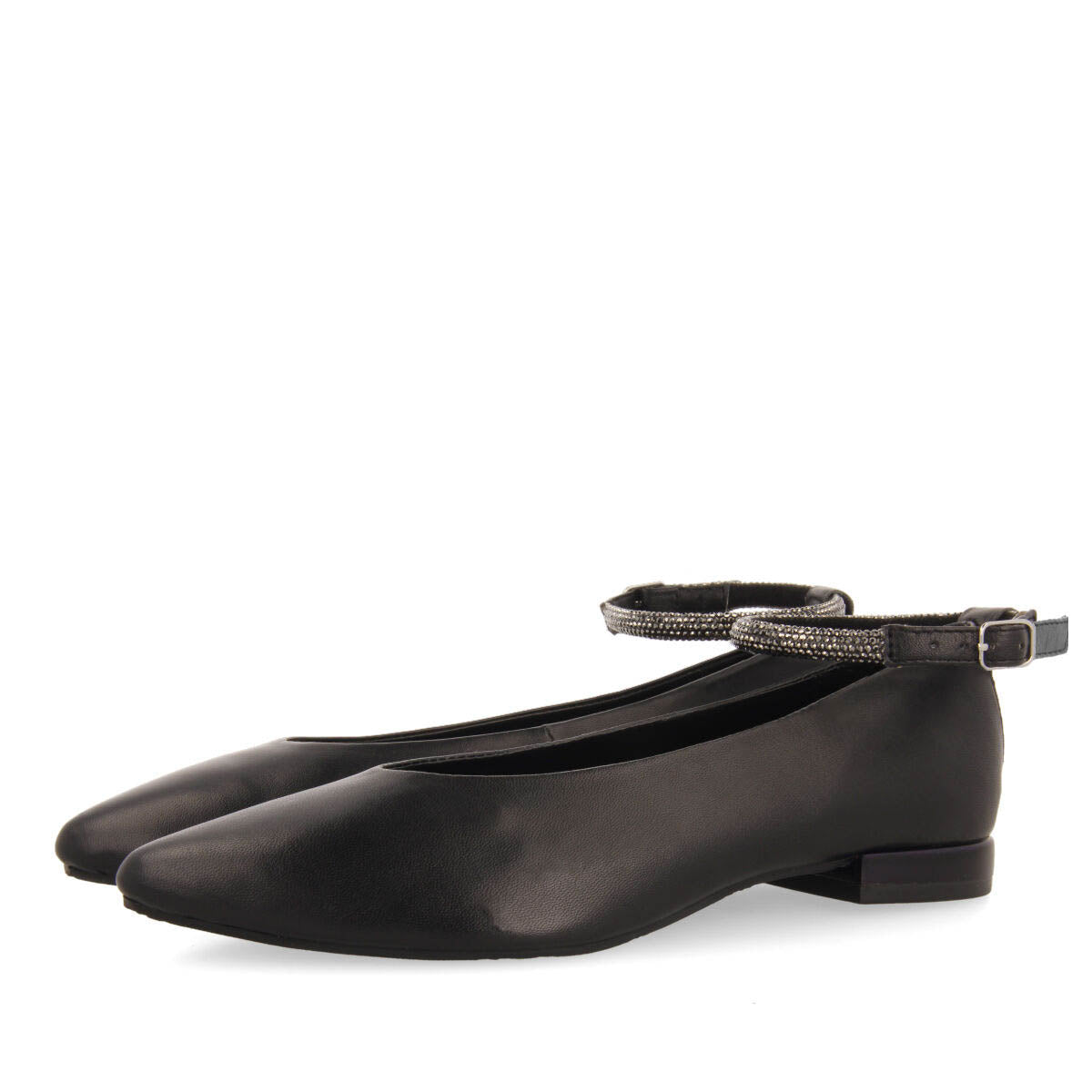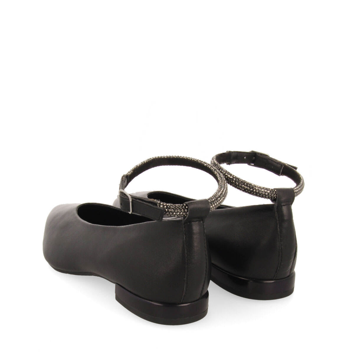 BAILARINAS NEGRAS DE PIEL CON DETALLE DE CORREA CON STRASS PARA MUJER MENNO