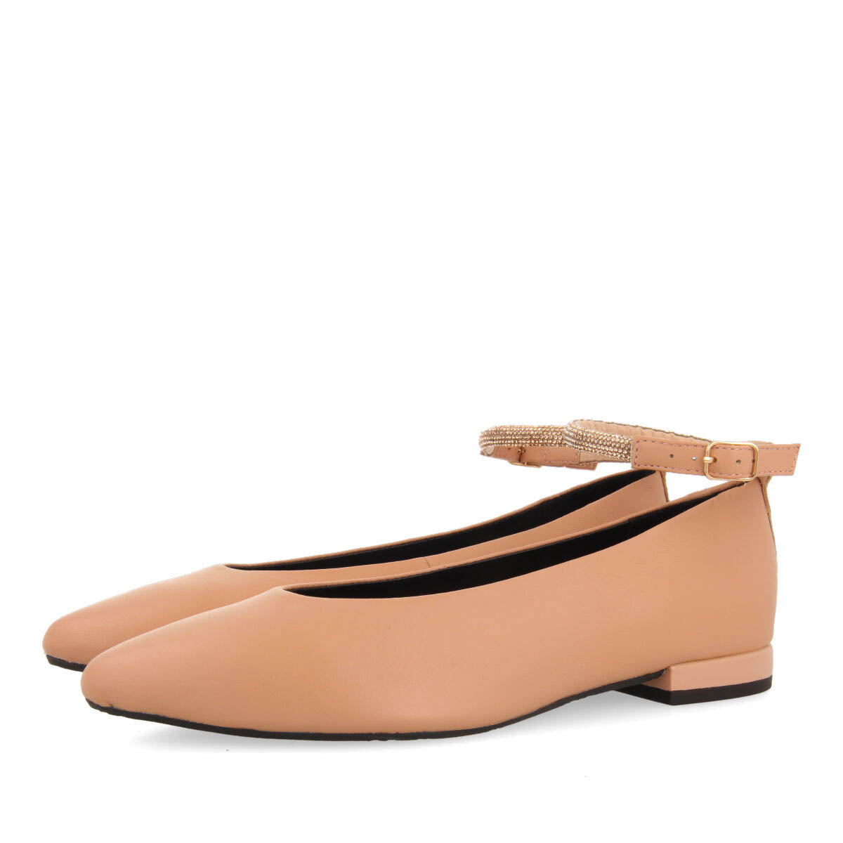 BAILARINAS NUDE DE PIEL CON DETALLE DE CORREA CON STRASS PARA MUJER MENNO