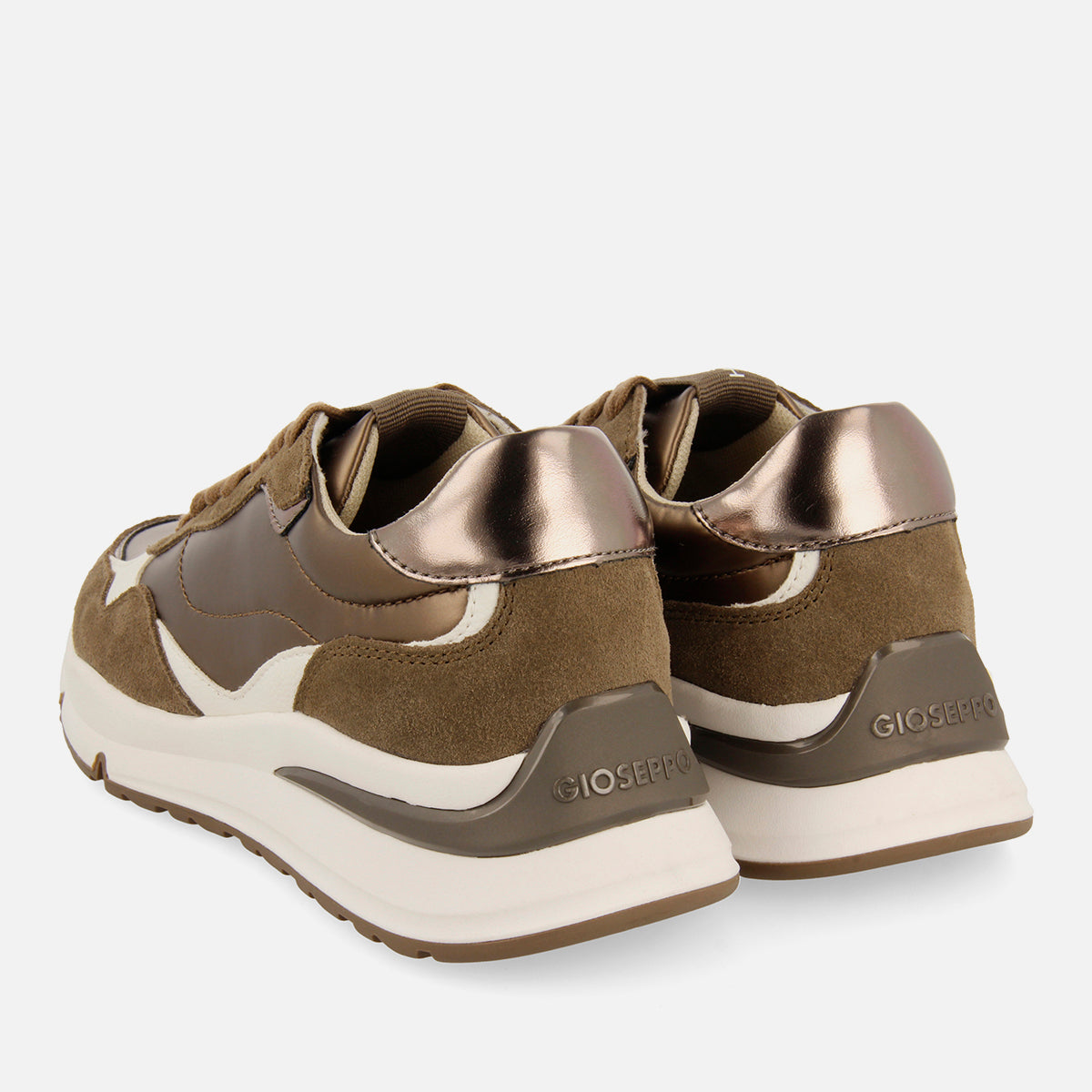 Must have! Sneakers marrones acolchadas con acentos metalizados. Disponen de suela de EVA inyectada y plantilla anatómica, extraíble y sistema Gio Memory Effect para suavizar cada paso. La hilatura de los tejidos utilizados en la fabricación del forro de este modelo tiene el sello de garantía certificada Global Recycle Standard (GRS). Todas las tendencias las encontrarás en la nueva colección de Gioseppo Woman.