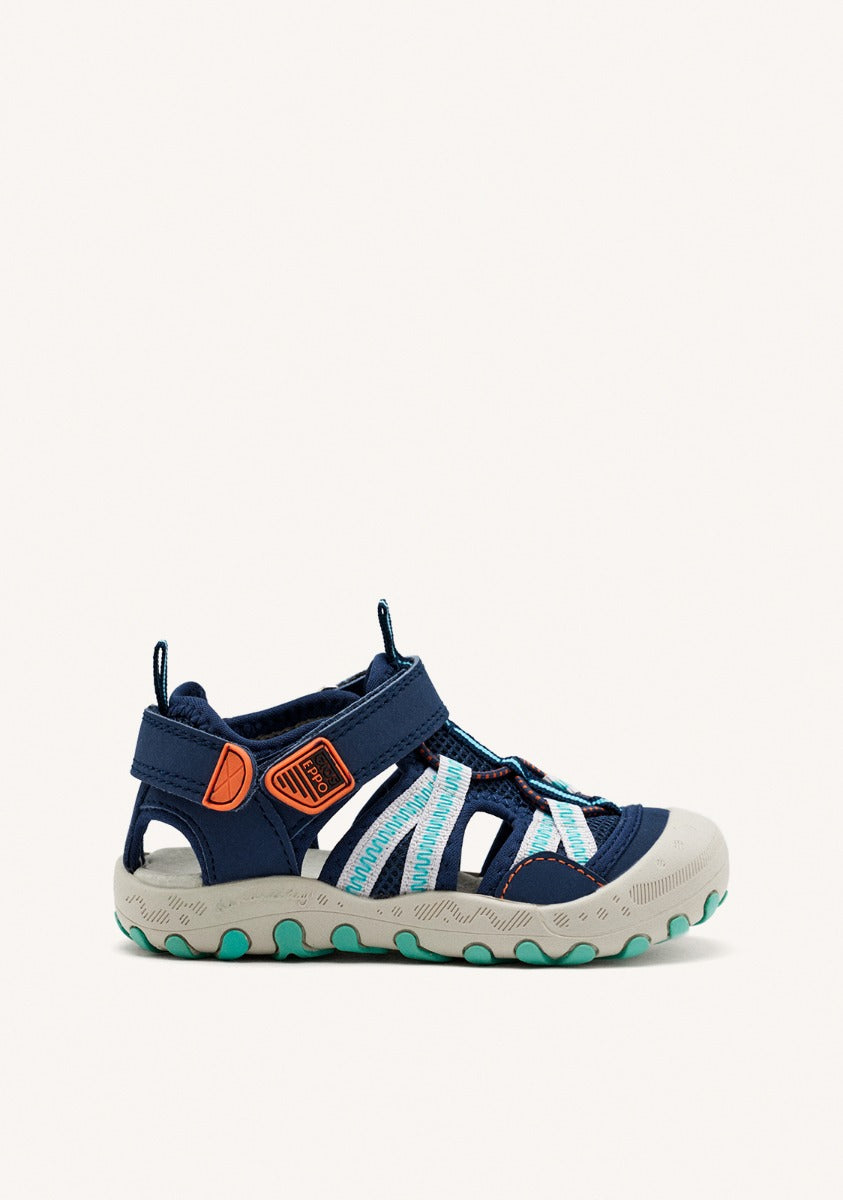 CHANCLAS DEPORTIVAS AZUL MARINO CON DETALLES NARANJAS PARA NIÑO DEINZE