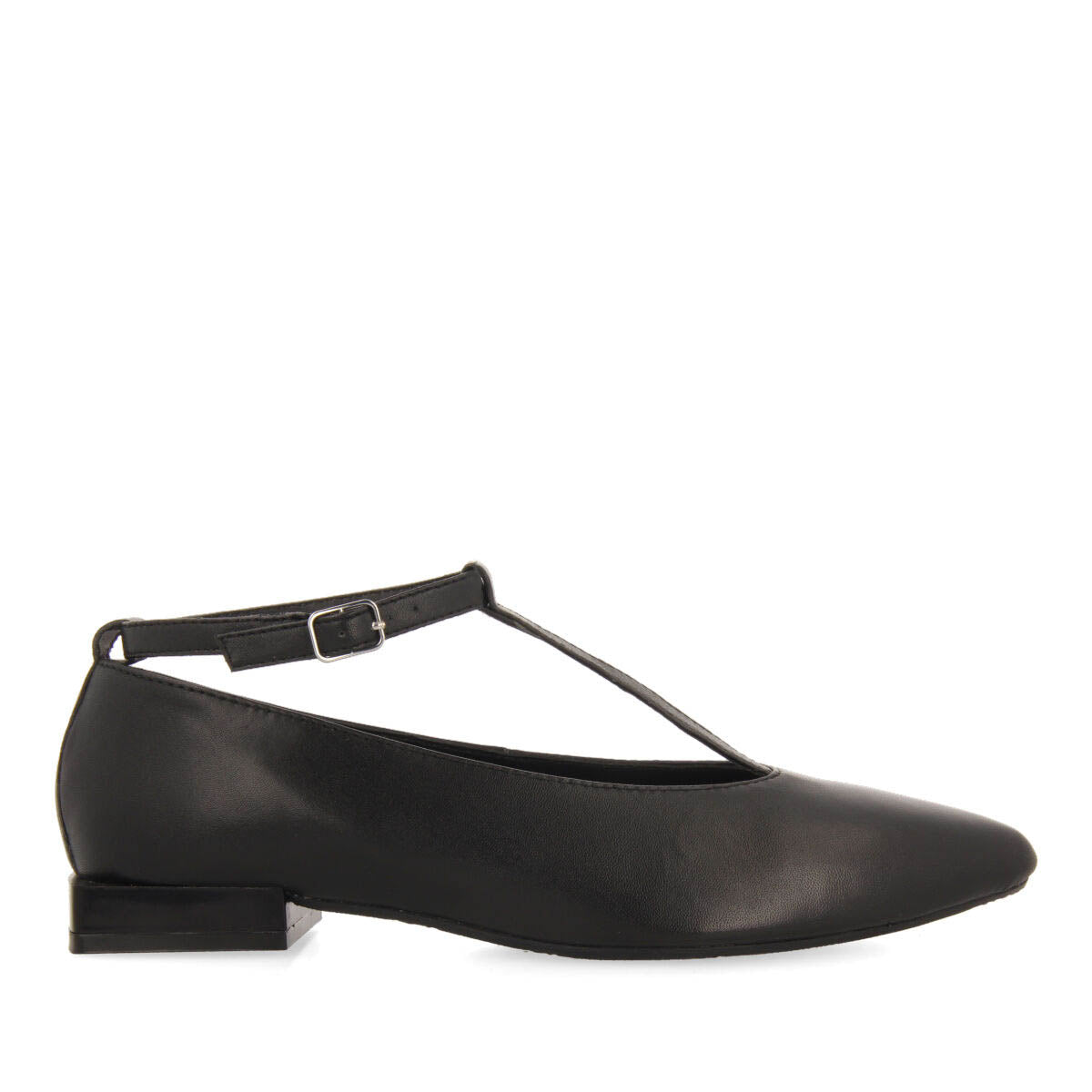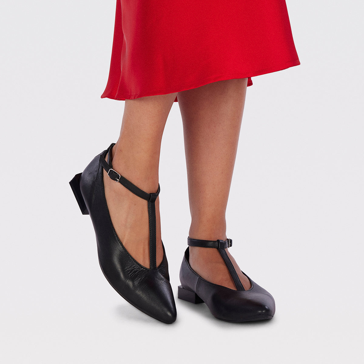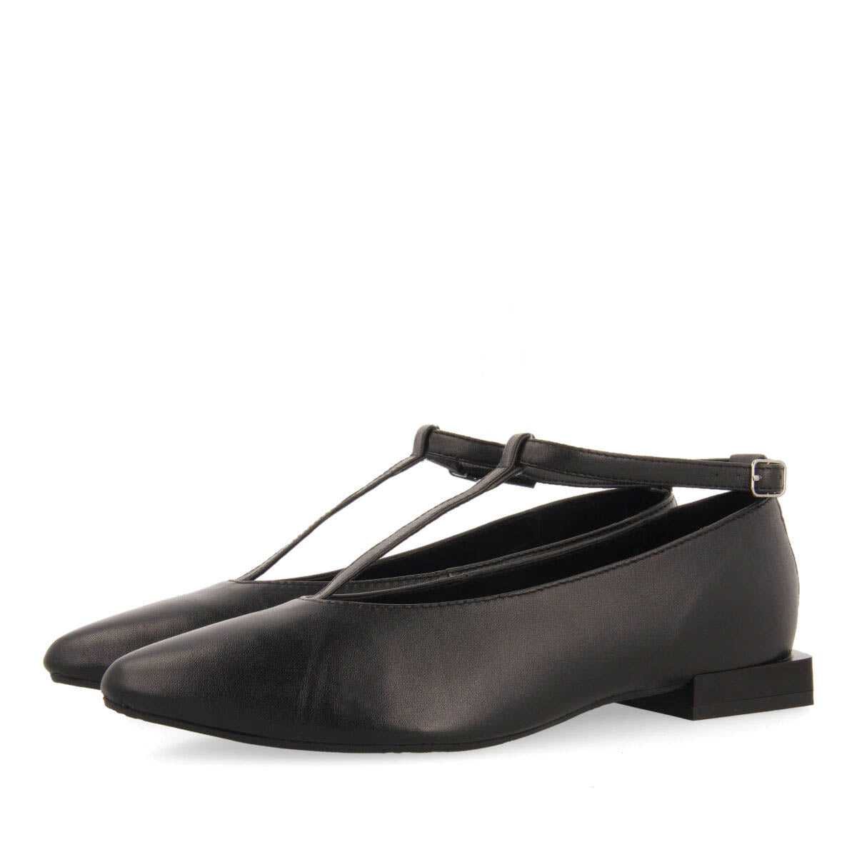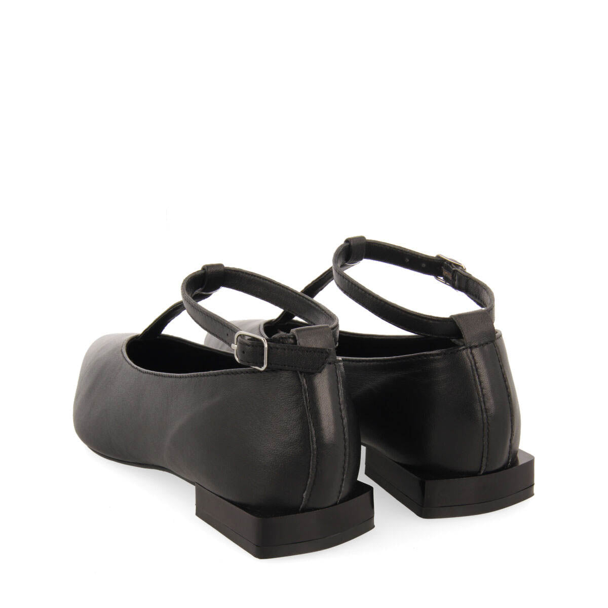 BAILARINAS NEGRAS DE PIEL CON TIRAS PARA MUJER PEEVER