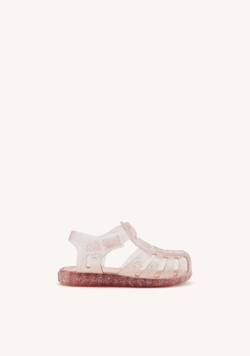 ¡Diversión en el agua! Cangrejeras de color rosa transparente con glitter y parche de osito en el corte. Cuentan con cierre regulable para ajustar el pie. La plantilla es suave y esponjosa y el forro de PVC muy blandito. El piso es flexible y ligero para facilitar la movilidad de los peques. Hazte con el calzado más divertido para sus primeras veces en la playa.