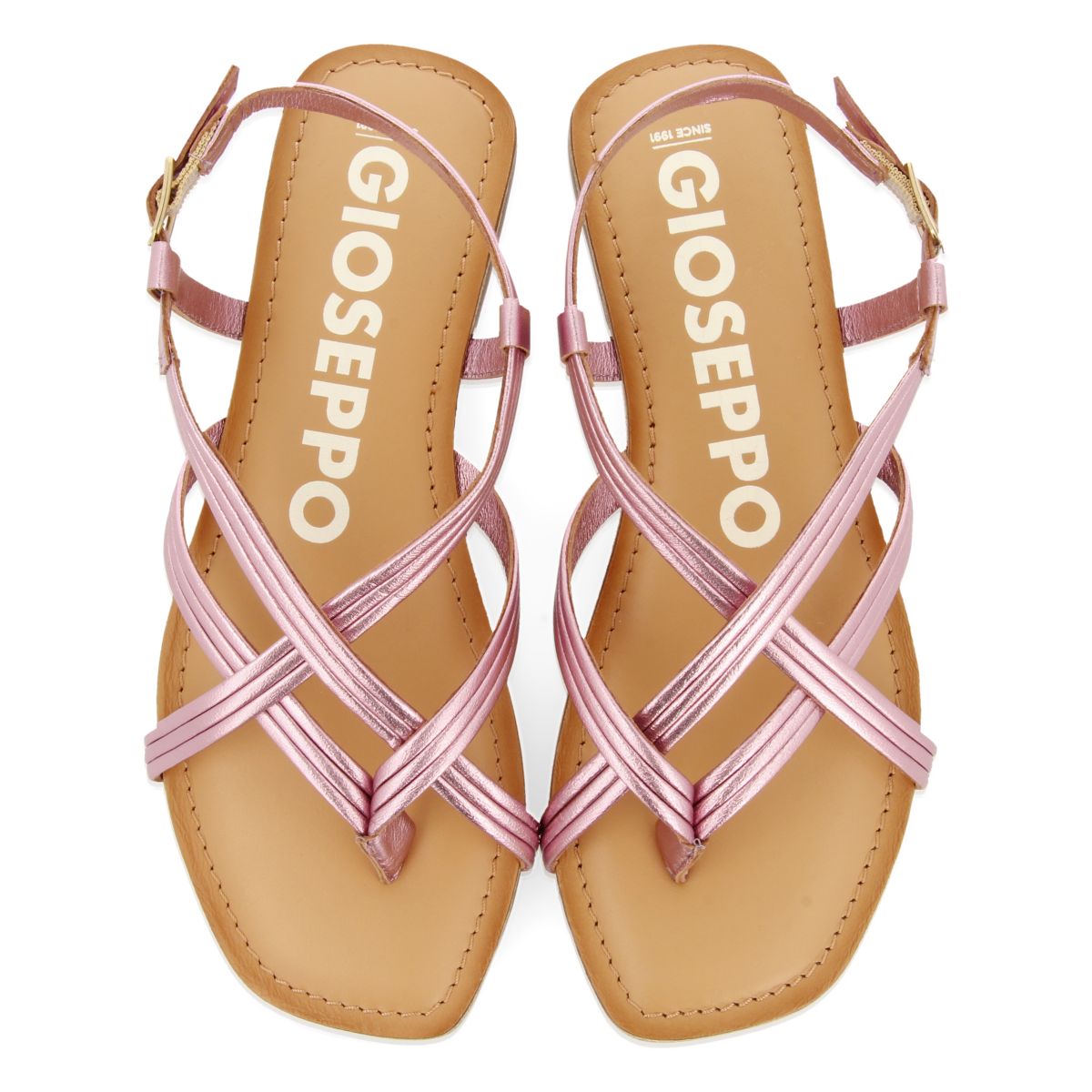 SANDALIAS DE PIEL ROSA DE TIRAS CRUZADAS PARA MUJER FUNARE