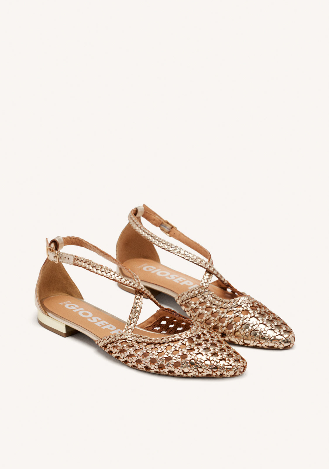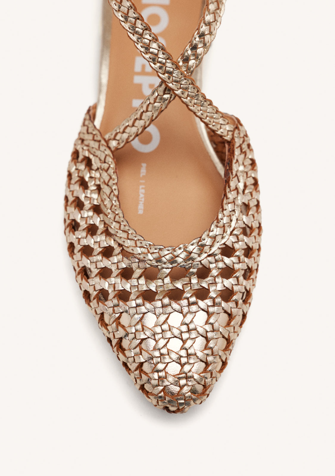 BAILARINAS DE PIEL COLOR PLATINO CON TRENZADOS PARA MUJER LESKOVIC
