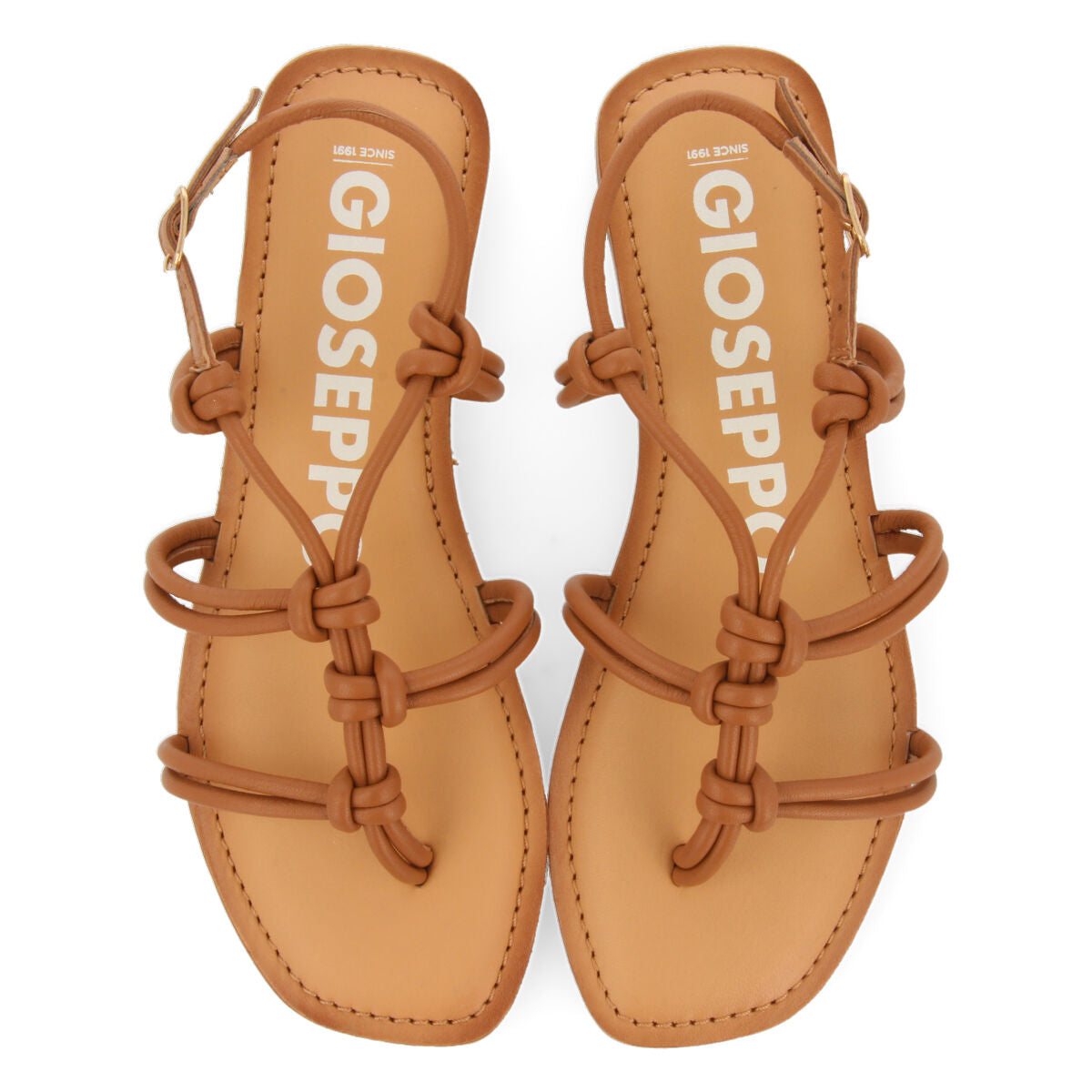 SANDALIAS PLANAS DE COLOR CUERO CON TIRAS FINAS Y DETALLE DE NUDOS PARA MUJER ROSNY