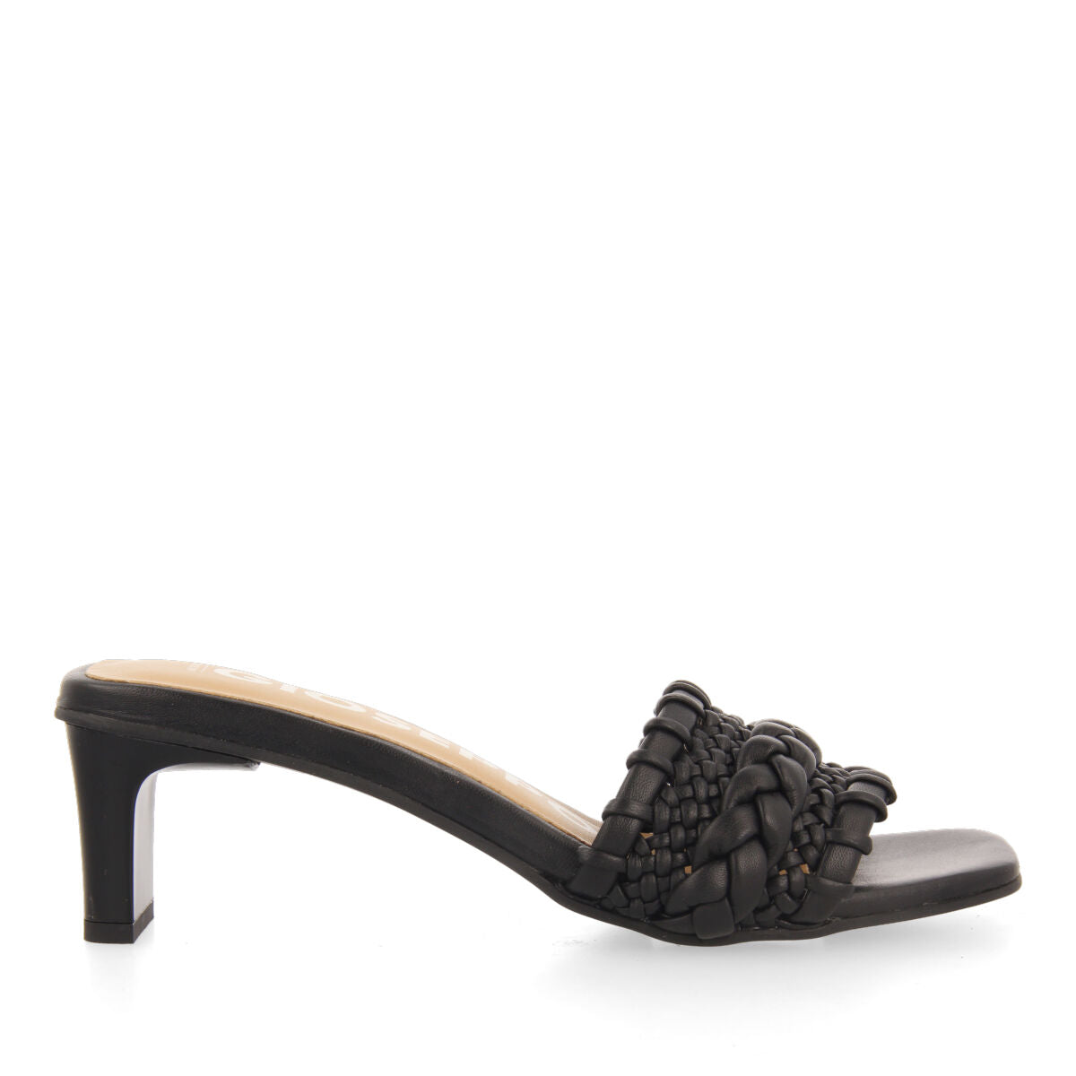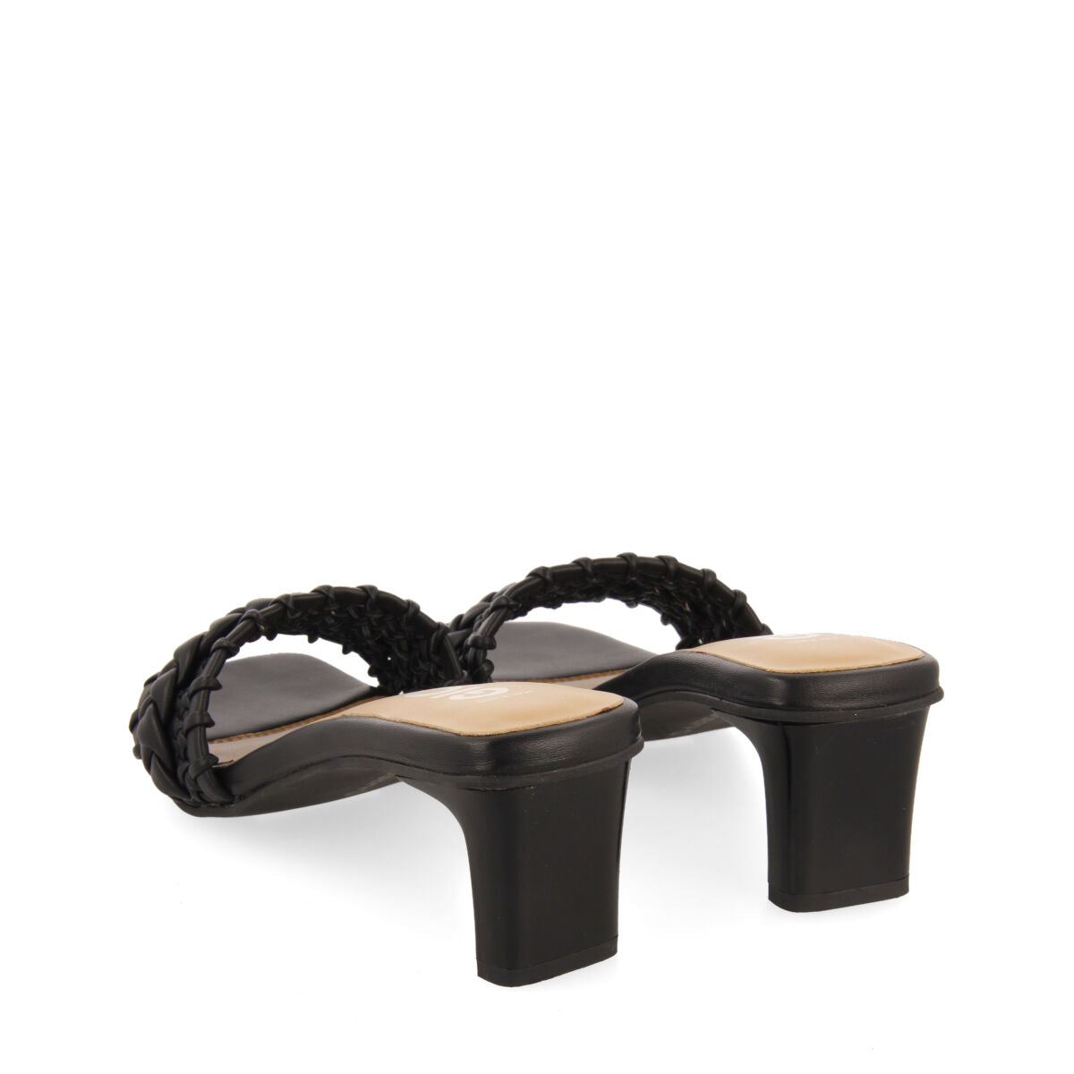 SANDALIAS NEGRAS DE PALA TRENZADAS CON TACÓN PARA MUJER SABOGA