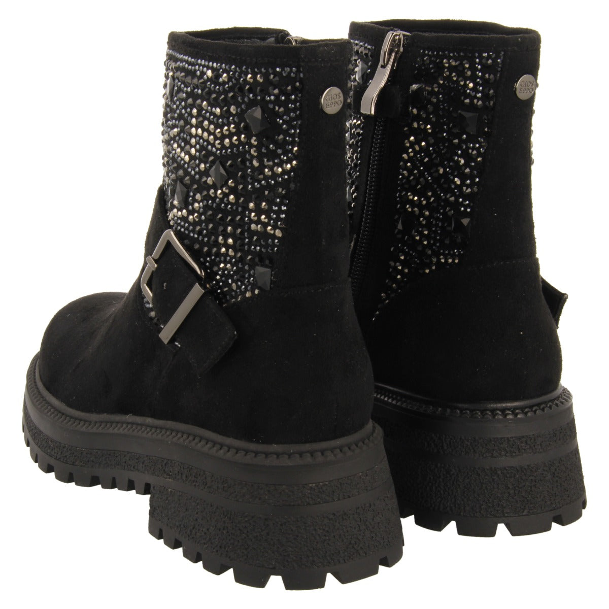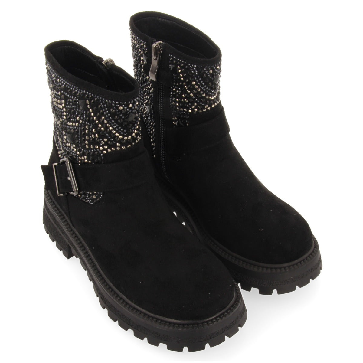 BOTINES NEGROS ESTILO BIKER CON PEDRERÍA PARA NIÑA Y NIÑO SANDL