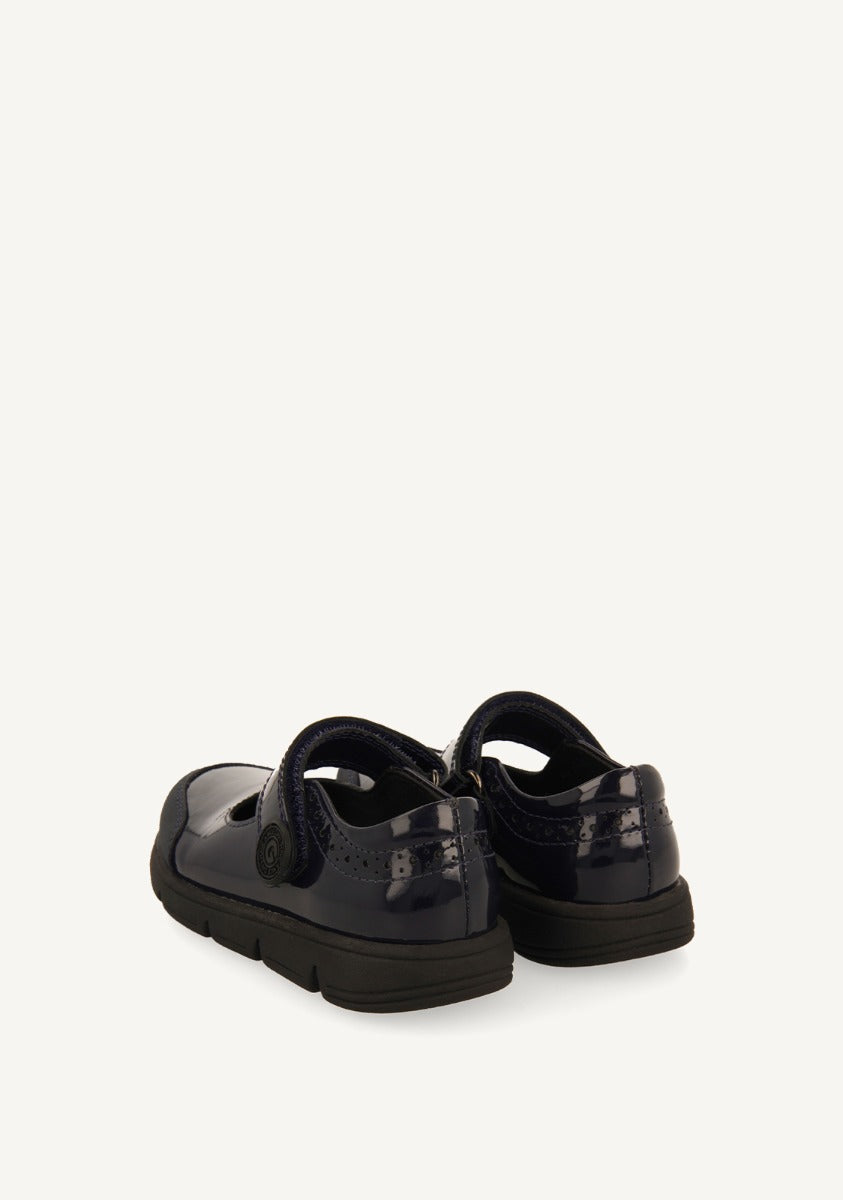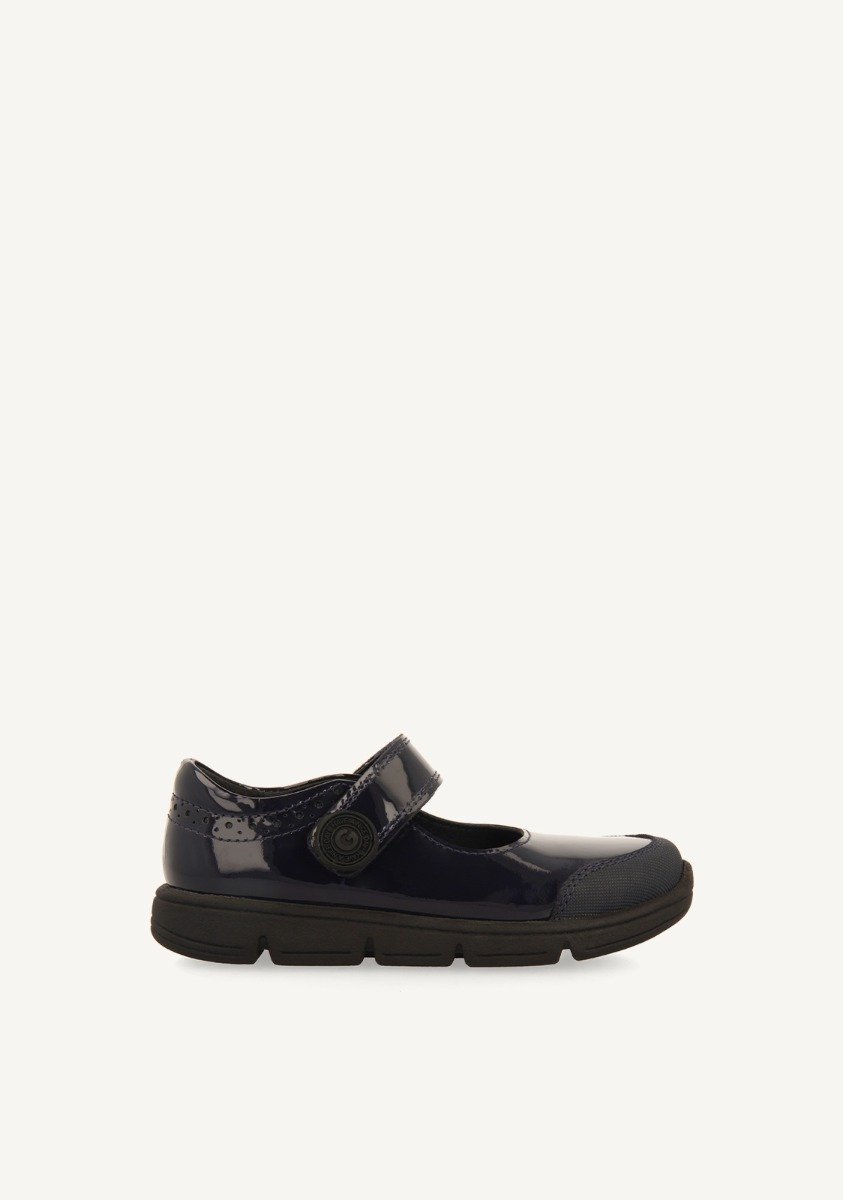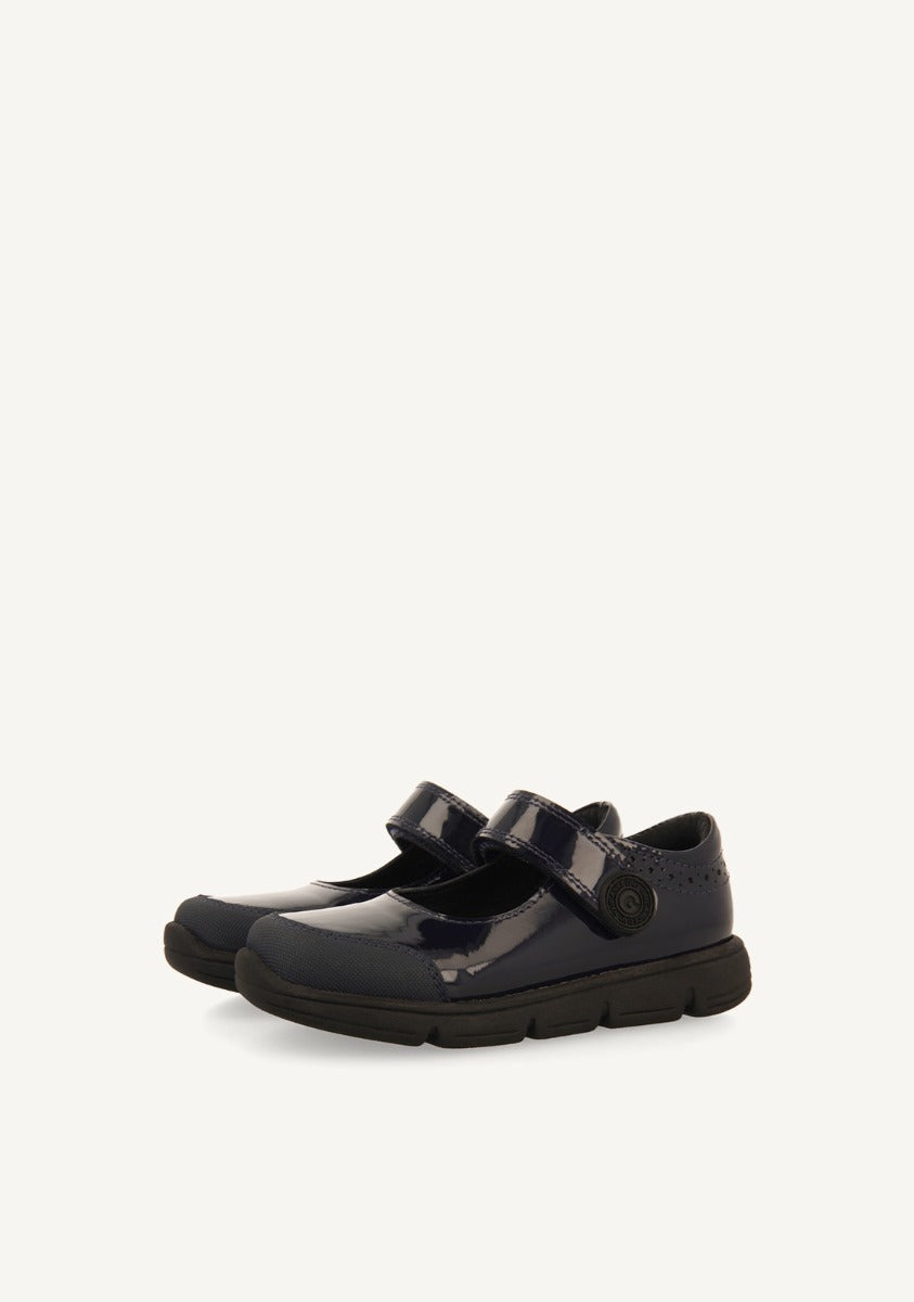 Desde el primer timbre hasta el último. Bailarinas colegiales de color azul marino de piel efecto charol con cierres ajustables. Cuentan con forro transpirable, piso flexible y plantilla de piel muy acolchada y transpirable. El corte está hecho de piel curtida en tenerías que siguen un protocolo más sostenible según los estándares de Leather Working Group (LWG). ¡Comodidad y calidad a la par! - Resistencia al desgaste. - Materiales de refuerzo. - Suela muy ligera, antideslizante y flexible. - Forro y plantilla transpirables, absorbentes y de secado rápido.