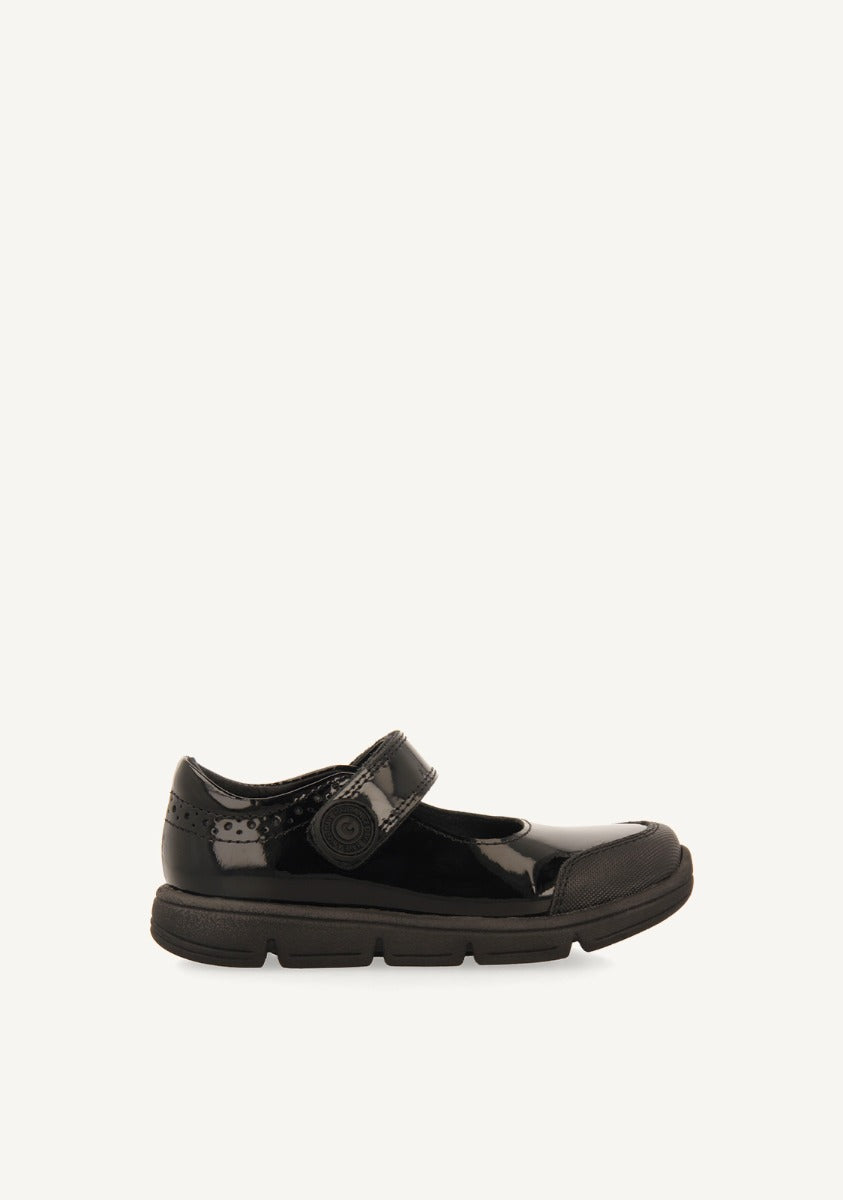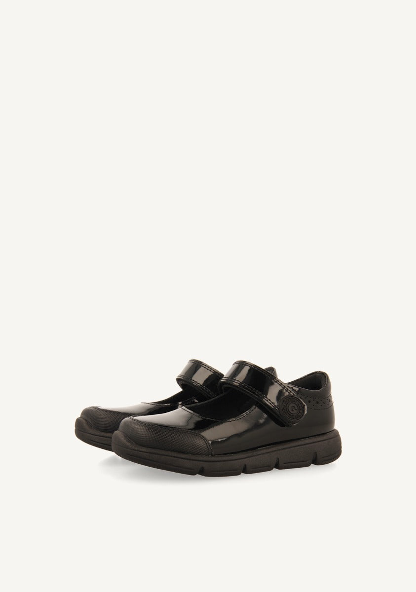 Desde el primer timbre hasta el último. Bailarinas colegiales negras de piel efecto charol con cierres ajustables. Cuentan con forro transpirable, piso flexible y plantilla de piel muy acolchada y transpirable. El corte está hecho de piel curtida en tenerías que siguen un protocolo más sostenible según los estándares de Leather Working Group (LWG). ¡Comodidad y calidad a la par! - Resistencia al desgaste. - Materiales de refuerzo. - Suela muy ligera, antideslizante y flexible. - Forro y plantilla transpirables, absorbentes y de secado rápido.