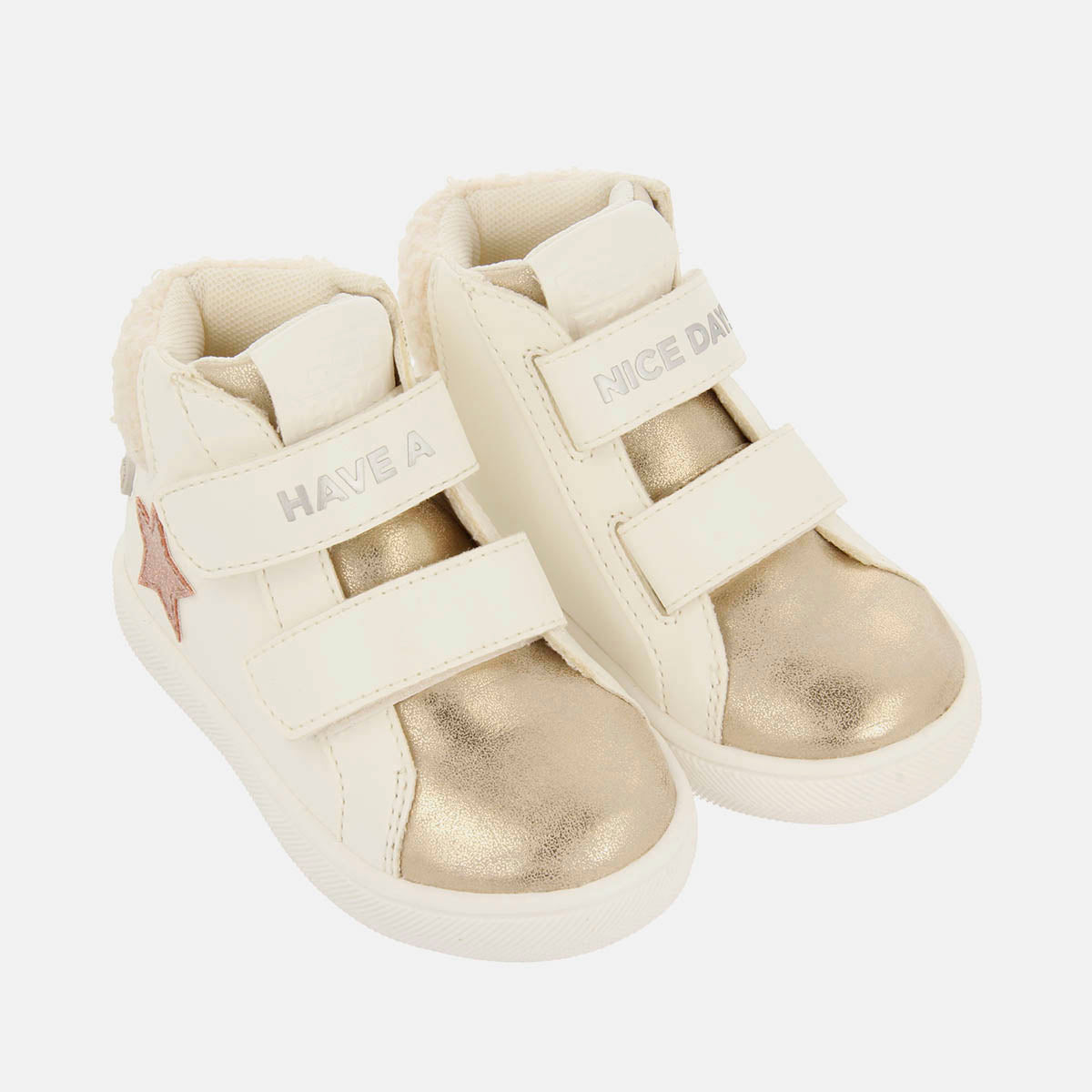 Confort y tendencia para tu bebé. Disponen de plantilla Gio Memory Effect para suavizar y amortiguar la pisada. La suela está hecha de caucho. El forro y la plantilla son de 100% poliéster transpirable y reciclado. La hilatura de los tejidos utilizados en la fabricación del forro y la plantilla tiene el sello de garantía certificada Global Recycle Standard (GRS). ¡Sus primeros pasos con Gioseppo Kids!