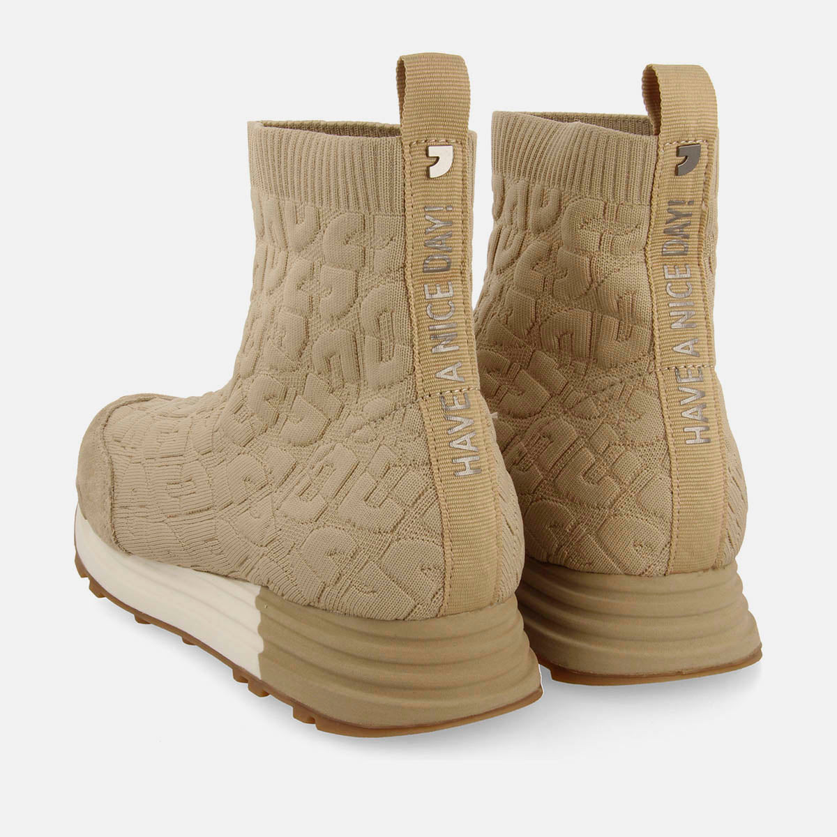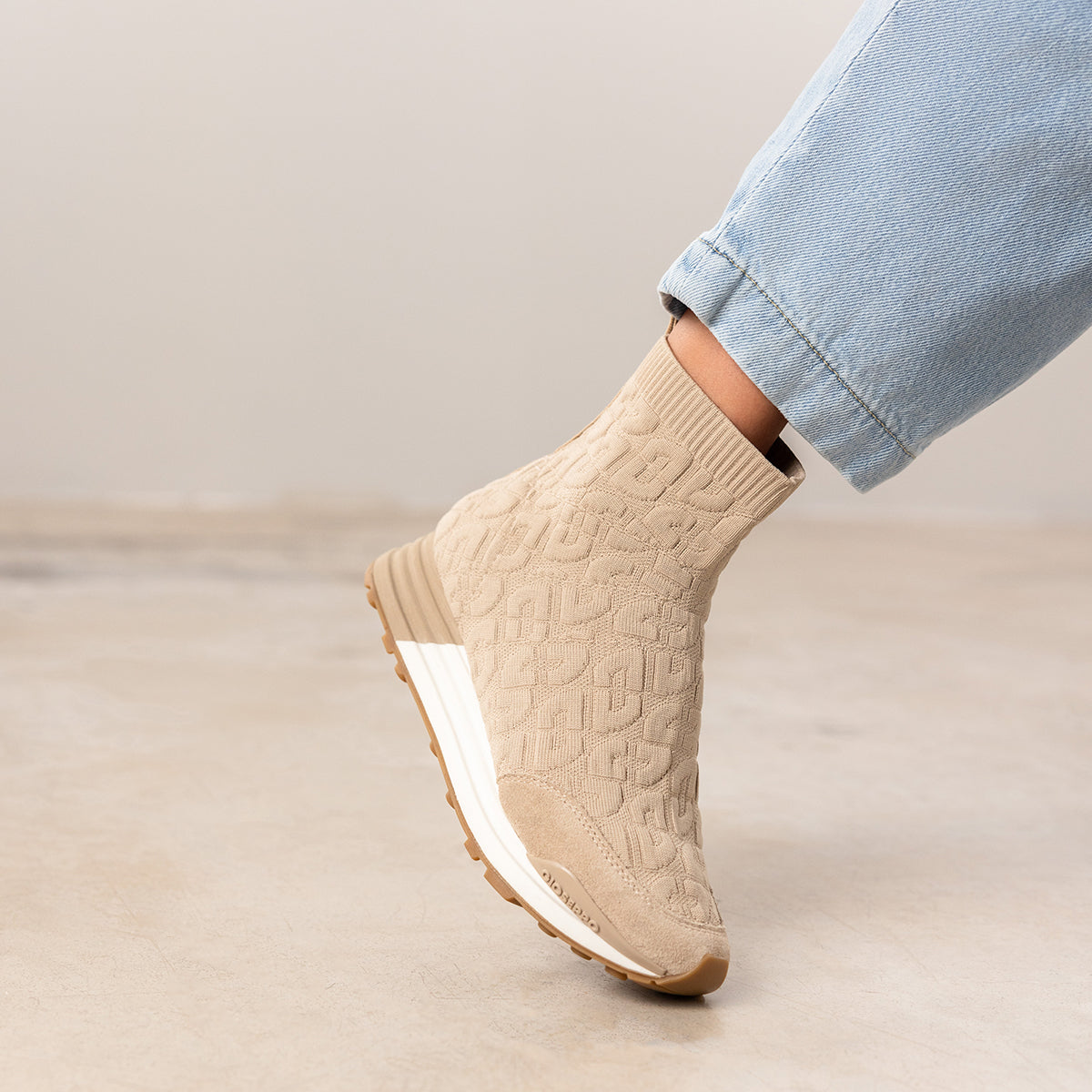 La tendencia que perdura por su comodidad. Sneakers color taupe tipo calcetín con textura. Incorporan plantilla anatómica extraíble y entresuela de EVA. El sistema Gio Memory Effect se adapta a la forma del pie y aporta suavidad en cada pisada. La hilatura de los tejidos utilizados en la fabricación del forro de este modelo tiene el sello de garantía certificada Global Recycle Standard (GRS). ¡No te las querrás quitar!