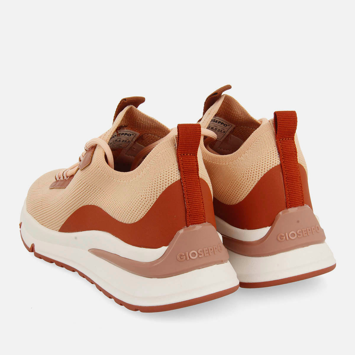 La comodidad al máximo nivel. Sneakers color teja tipo calcetín con cordones. La suela está hecha de EVA inyectada y la plantilla es anatómica y extraíble. Cuentan con sistema Gio Memory Effect que se adapta a la forma del pie y amortigua la pisada. La hilatura de los tejidos utilizados en la fabricación del forro de este modelo tiene el sello de garantía certificada Global Recycle Standard (GRS).