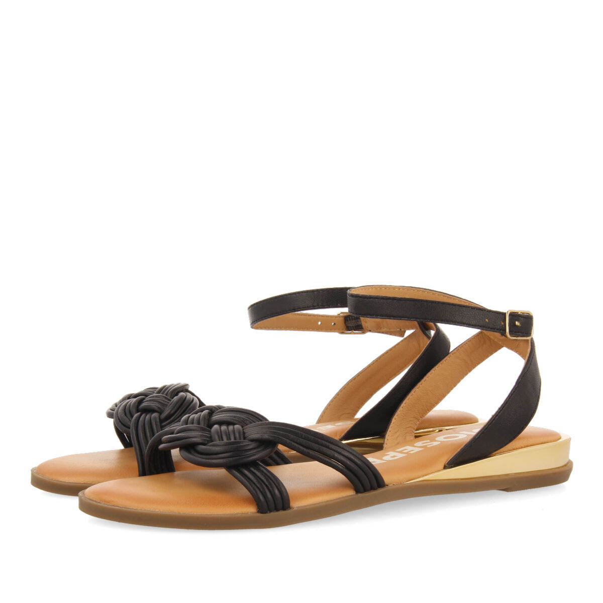 SANDALIAS NEGRAS CON TIRAS ANUDADAS PARA MUJER TELHA