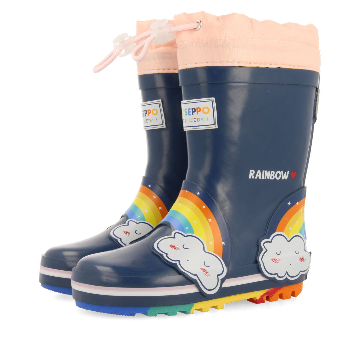 BOTAS DE AGUA MARINO CON NUBES Y ARCOÍRIS PARA NIÑA Y NIÑO UNKEN