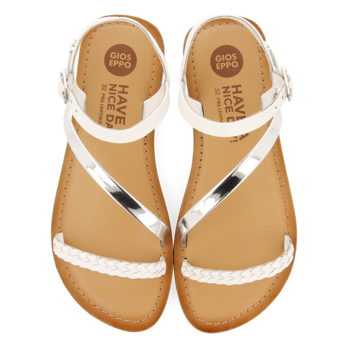 SANDALIAS BLANCAS DE PIEL CON DETALLES TRENZADOS Y METALIZADOS PARA NIÑA Y NIÑO HELIX